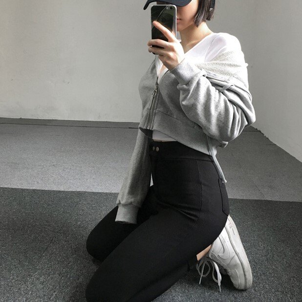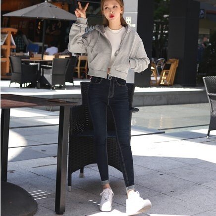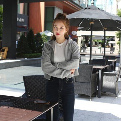 春新作 パーカー ショート丈 ジップパーカー レディースパーカー 韓国ファッション 秋 トップス トレーナー フード付き ハイウエスト
