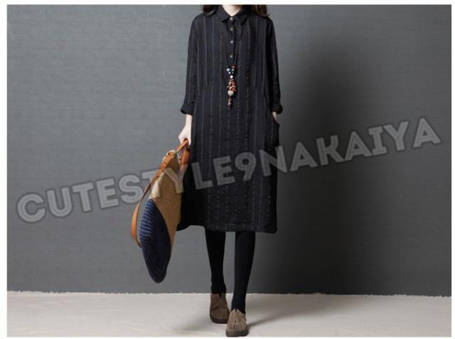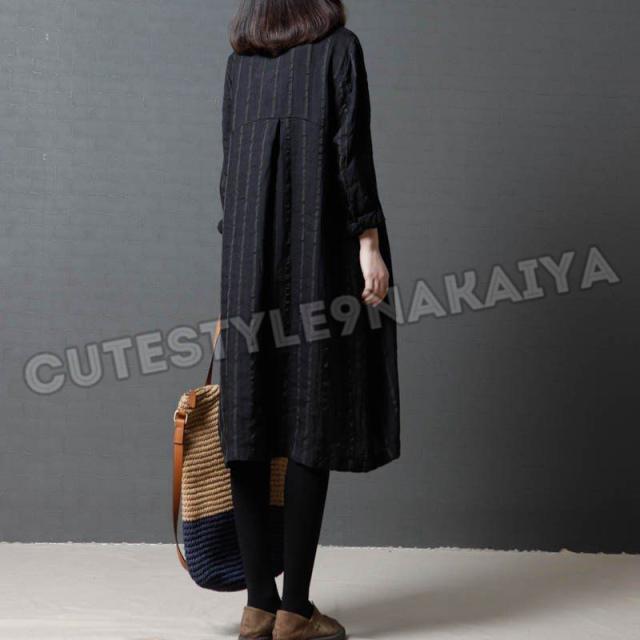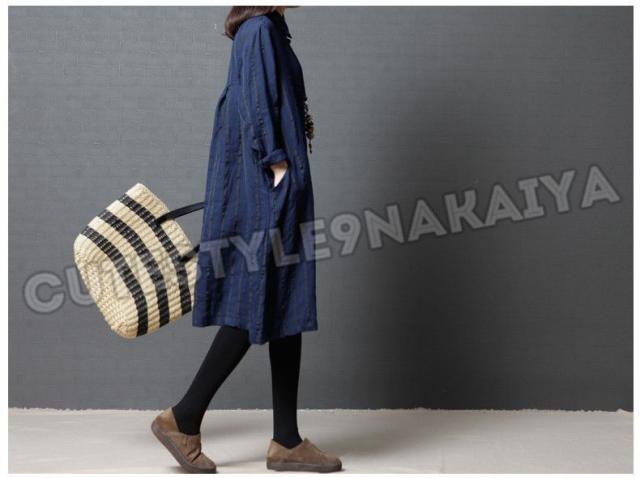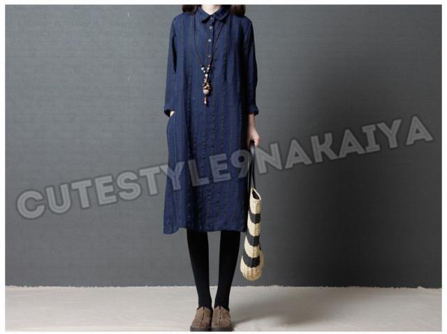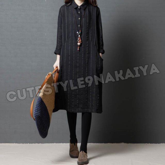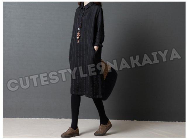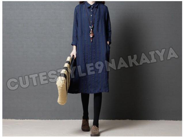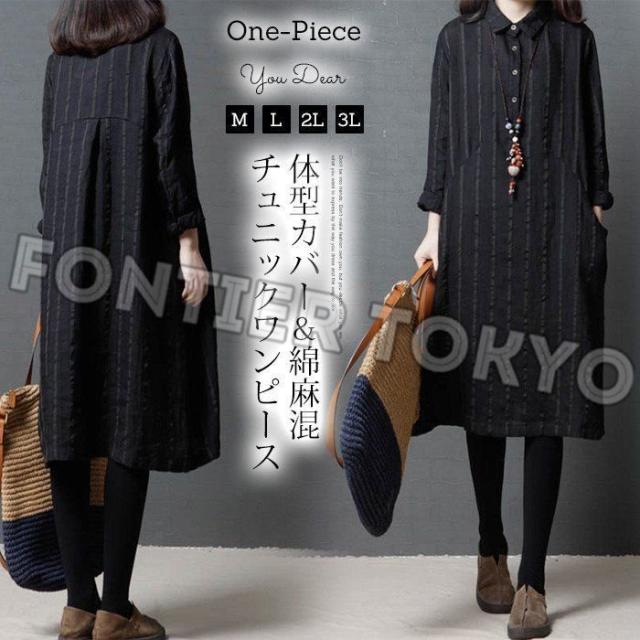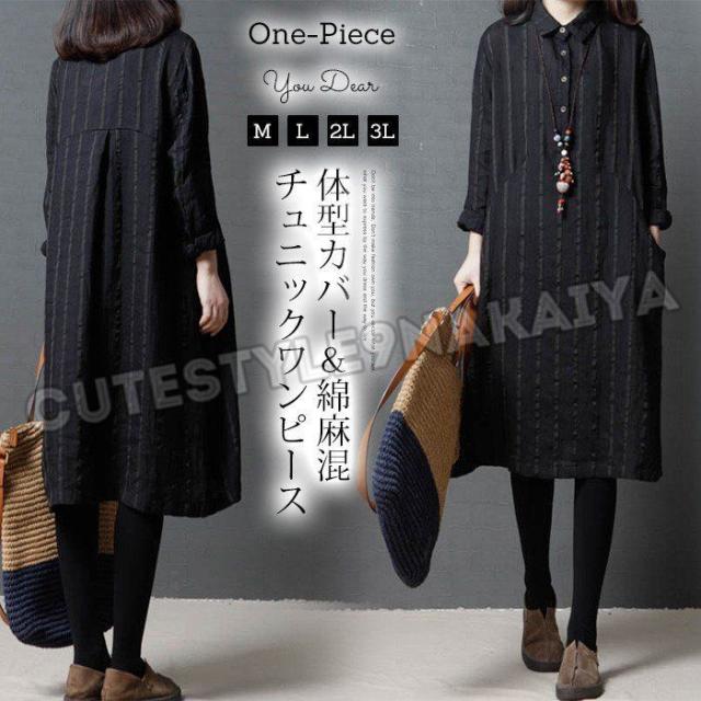 ワンピース レディース 膝丈 コットンリネン 春 チュニックワンピース シャツワンピ 長袖 ストライプ 体型カバー ゆったり 着痩せ 30代 40代 50代