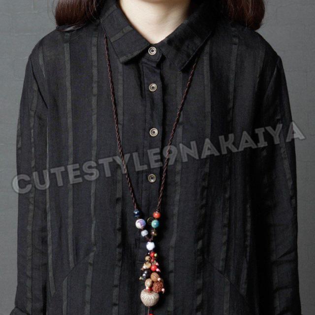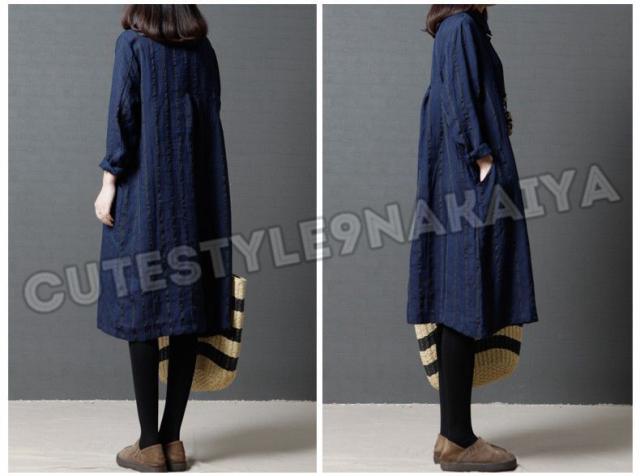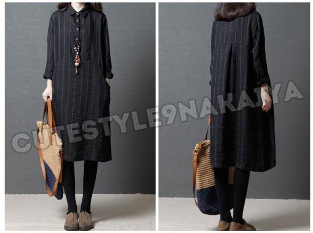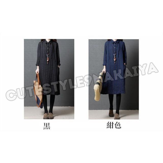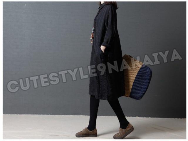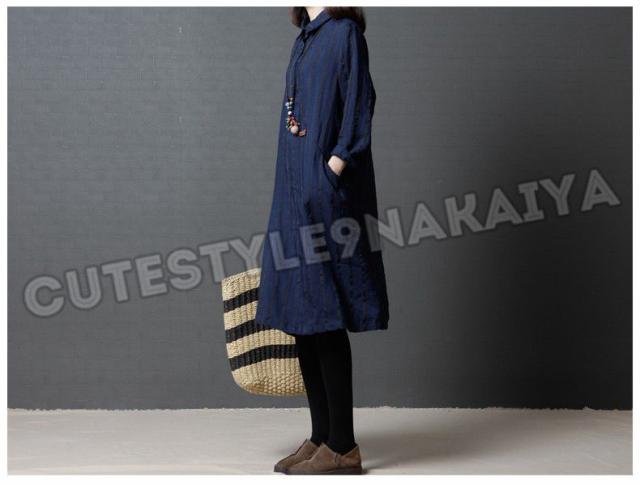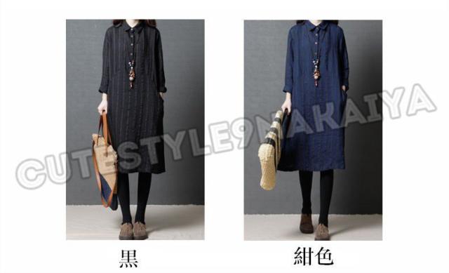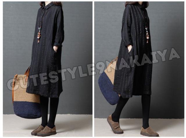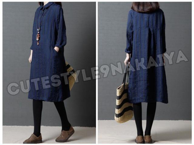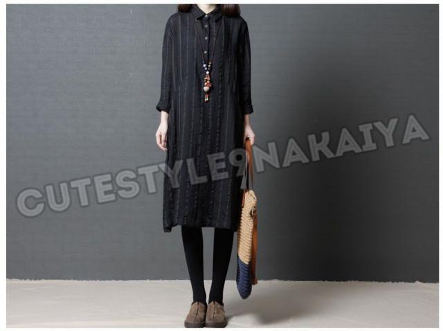 ワンピース レディース 膝丈 コットンリネン 春 チュニックワンピース シャツワンピ 長袖 ストライプ 体型カバー ゆったり 着痩せ 30代 40代 50代
