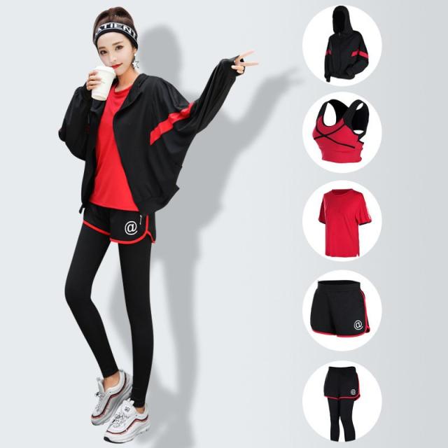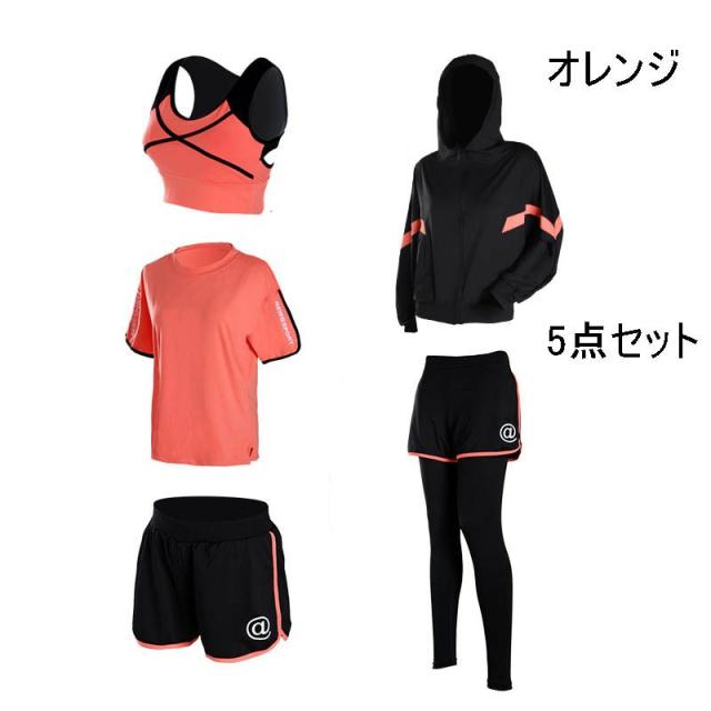 フィットネスウェア 5点セット ランニングウェア スポーツウェア レディース 上下セット ヨガ ジム トップス ショーツ レギンス スポーツブラ 吸汗速乾