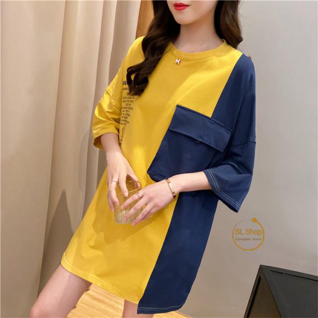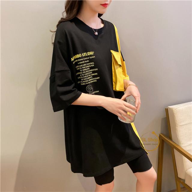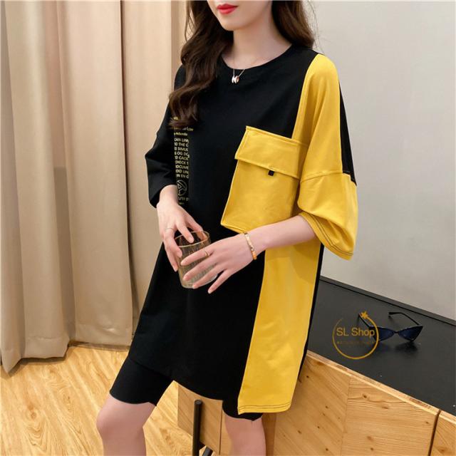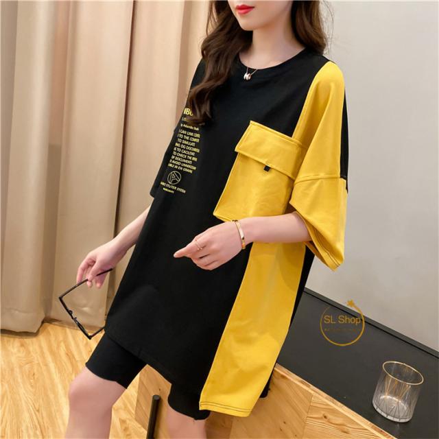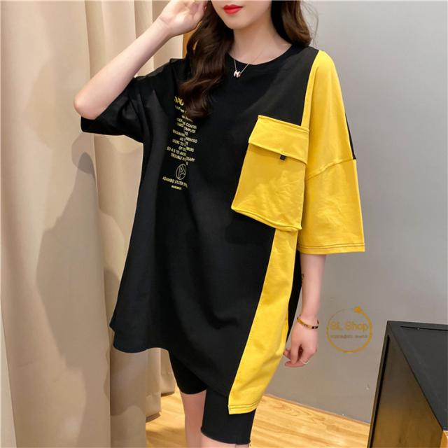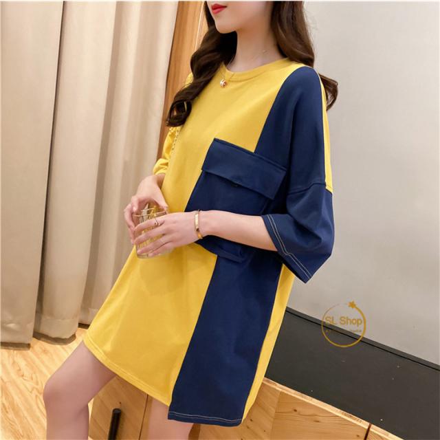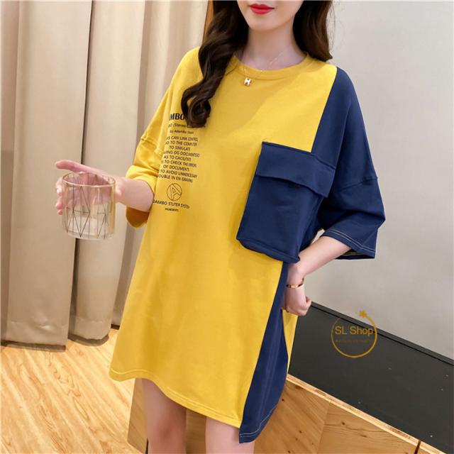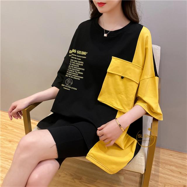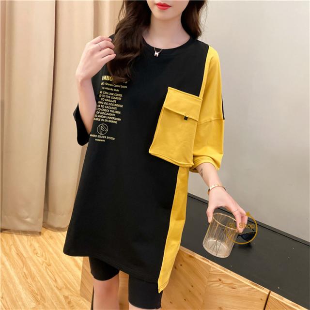 Tシャツ レディース 半袖 ロンティー カットソー 切り替え 配色 ポケット ゆったり トップス 2021 夏