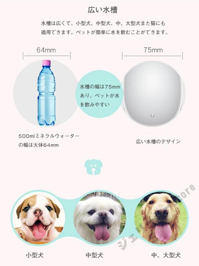 | サイズについての説明 | ペット給水器 携帯用 犬 給水器 携帯用 犬 水飲み器 550ml ペット 水飲みカップ ウォーターボトル 水槽付き 水漏れ防止 携帯用 犬の水のボトル 犬猫用 散歩 アウトドア 商品名:携帯用ペット給水器 容量:550ml サイズ:75*260mm 重量:250g ワンタッチボタン 給水口のボタンを押すだけでお水が注げます。飲み残した水は、給水口をアップにして給水ボタンを押して、水が給水口からボトルの方に戻ります。 広い水槽 水槽は広くて75mmの幅があり、小型犬、中型犬、中、大型犬または猫にも適用できます。 ペットが簡単に水を飲むことができます。 水漏れ防止 シリカゲルシールリングとワンタッチロックの設計、ペットに給水した後はロックウォーターボタンを左にして、給水口はしっかりロックできます。水が漏れる心配はありません。 550mlー大容量 550mlの容量は屋外でお散歩、ウォーキング、ハイキング、旅行などには十分です。 |