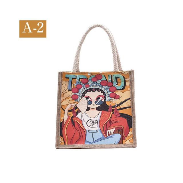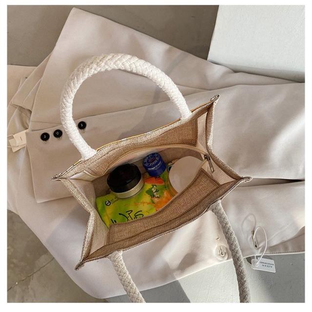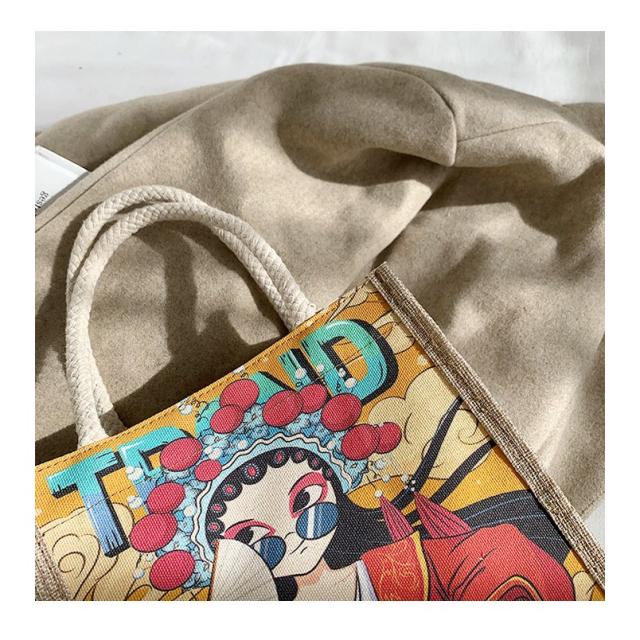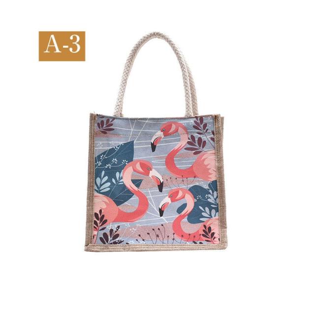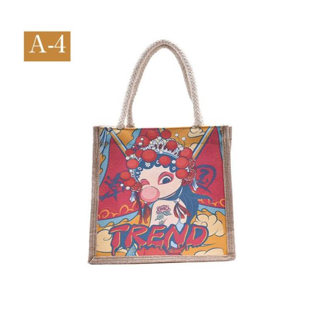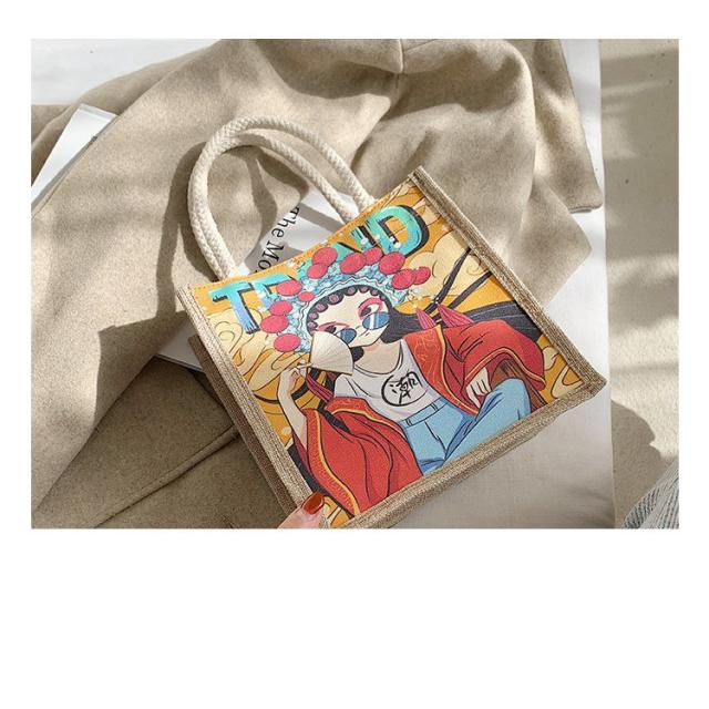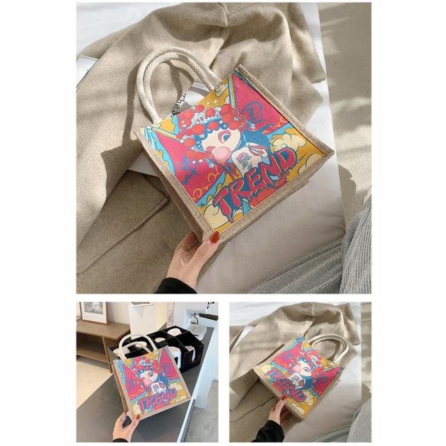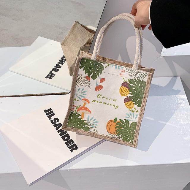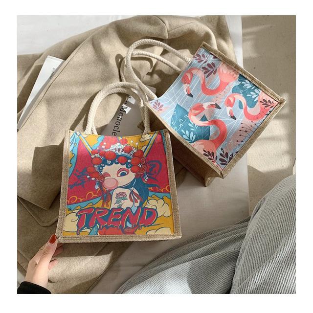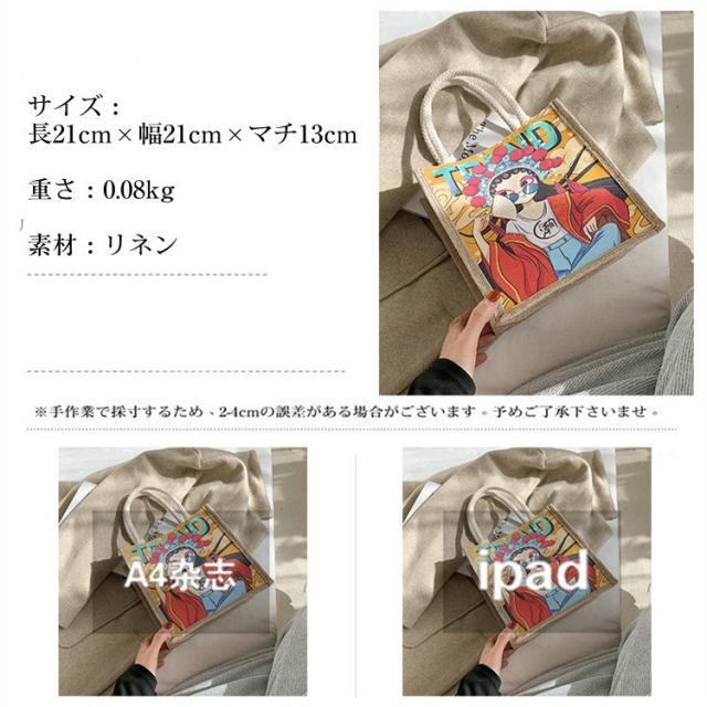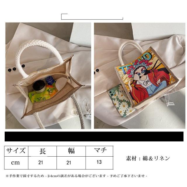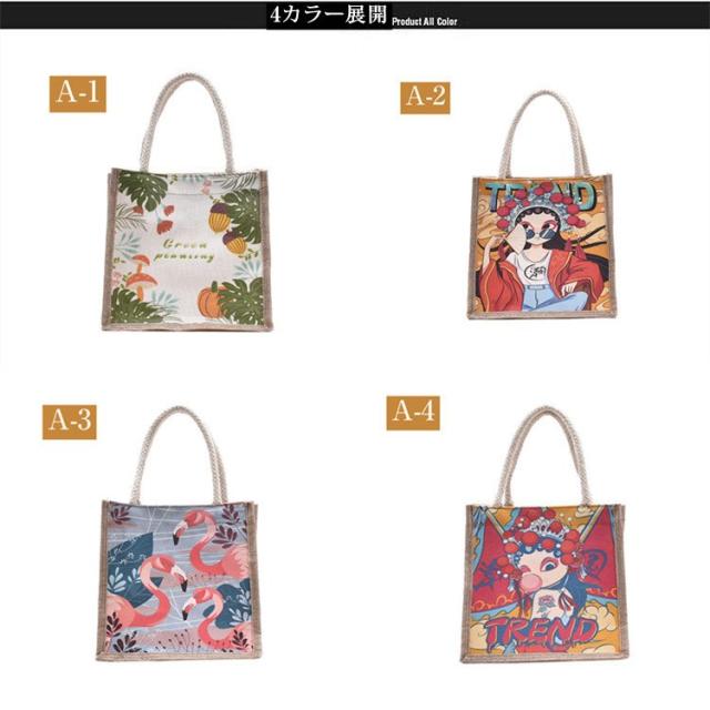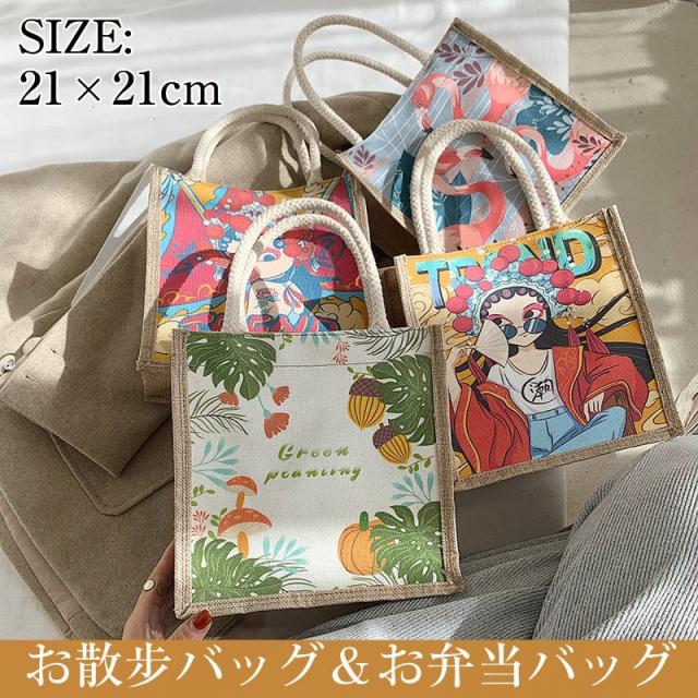 レディース ジュートバッグ 柄バッグ トート ハンドバッグ 麻バッグ ミニサイズmini リネン かごバッグ メイド かばん おしゃれ エコ カジュアルbag