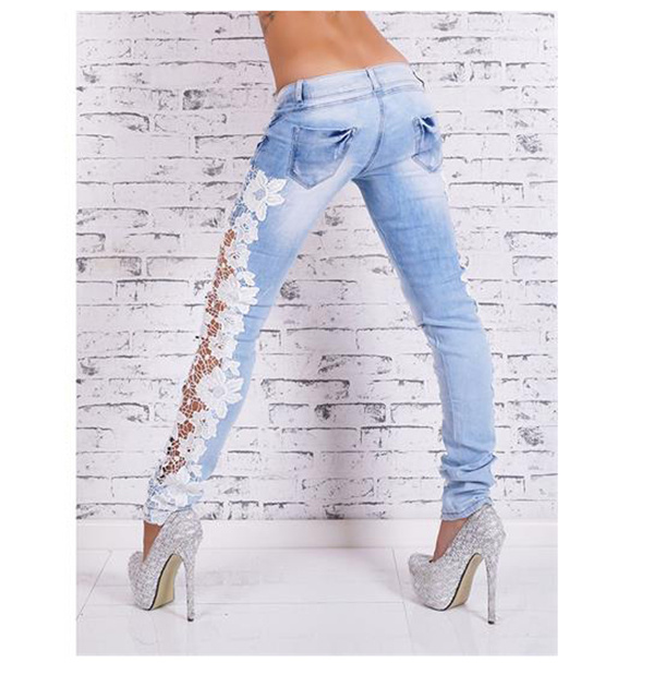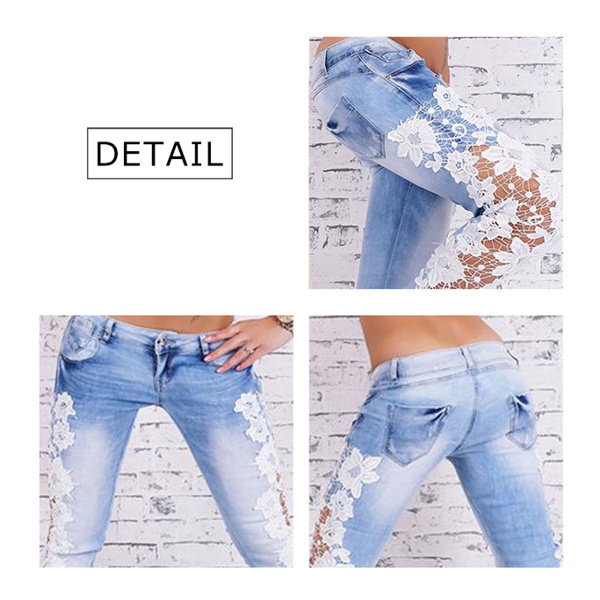 デニムパンツ レディース ストレッチ 花柄レース ボトムス ジーンズ 透け感パンツ ロング丈スキニー 着痩せ 超美脚 体型カバー 夜店 少女 OL 通勤