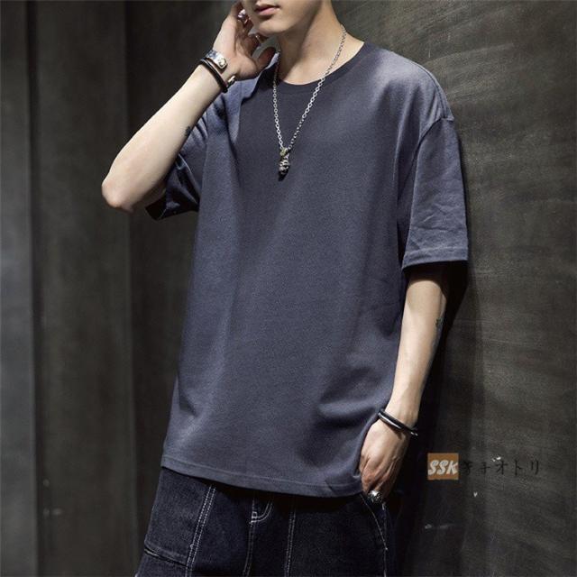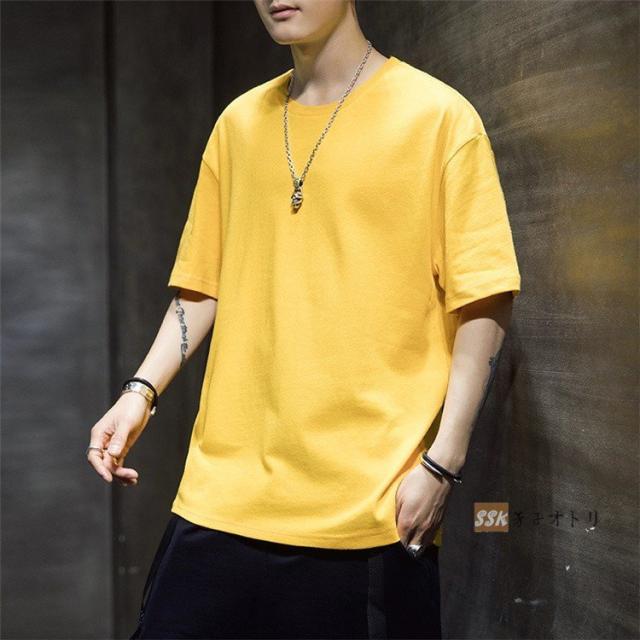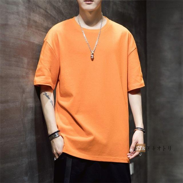 Tシャツ 夏服 メンズ 無地 トップス カットソー 袖Tシャツ 無地Tシャツ クルーネック メンズTシャツ 夏 サマー