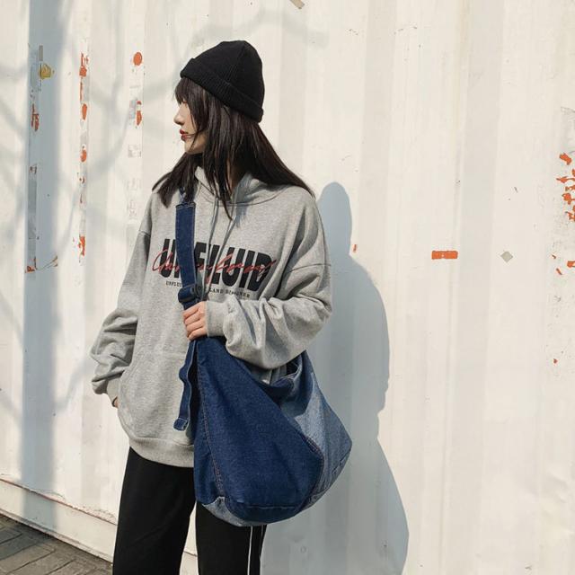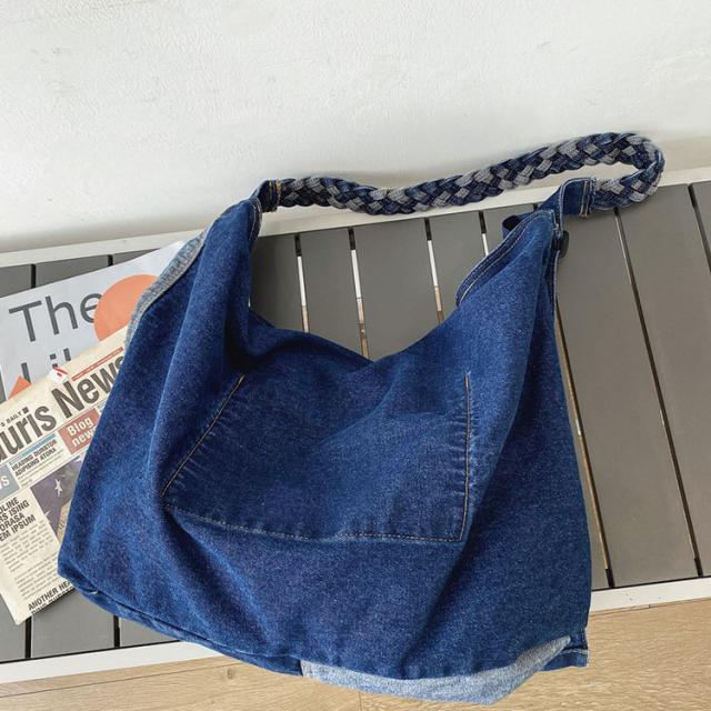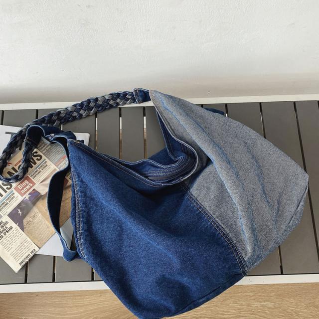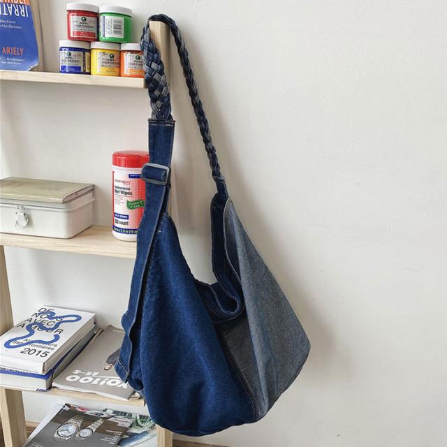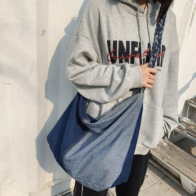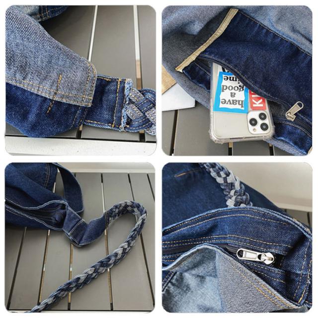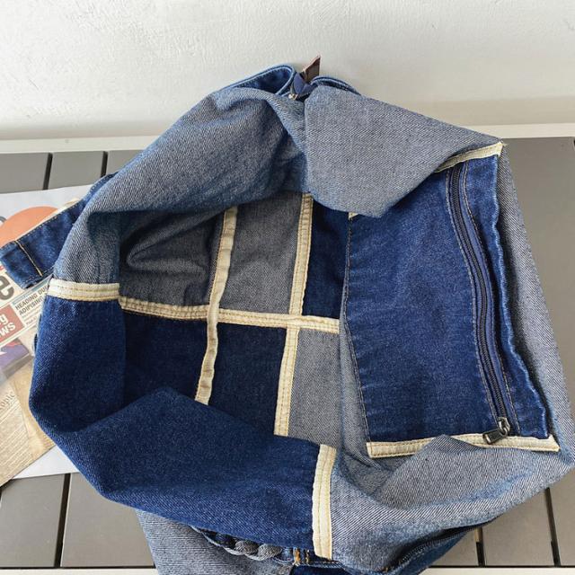 | サイズについての説明 | 大きめサイズのショルダーデニムバッグ。 広めのマチで収納力抜群。 便利な収納ポケット付き。 デニムで編み込んだストラップもおしゃれ♪ どんなコーディネートにも合わせやすく、デイリーに使いやすいバッグです。 サイズ:約縦37×横43×幅19cm 重量:約400g |