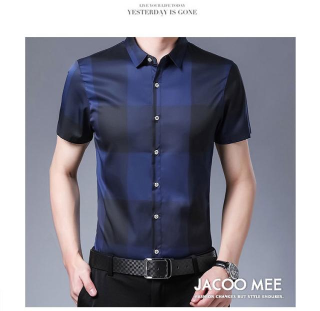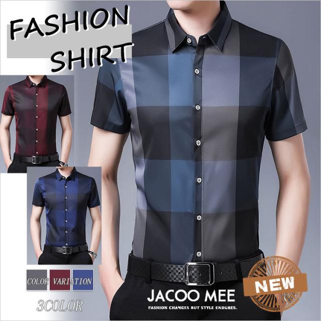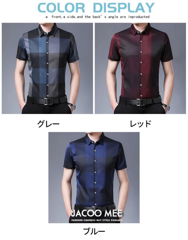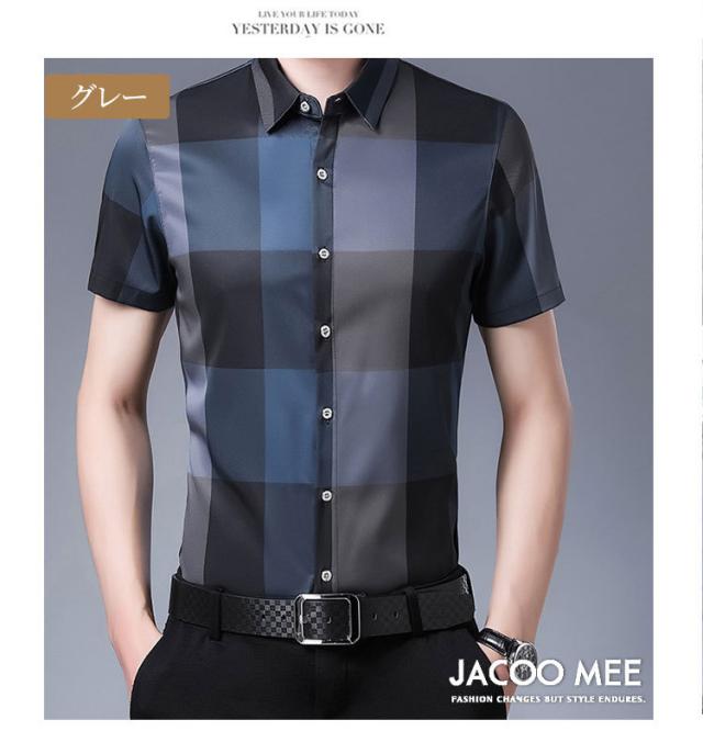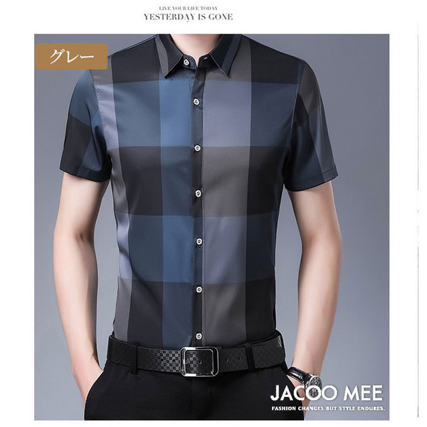 チェックシャツ メンズ 半袖シャツ 2021 夏作 アイスシルク半袖シャツ ファッション ビジネスシャツ 新作 送料無料 カジュアルなメンズシャツ
