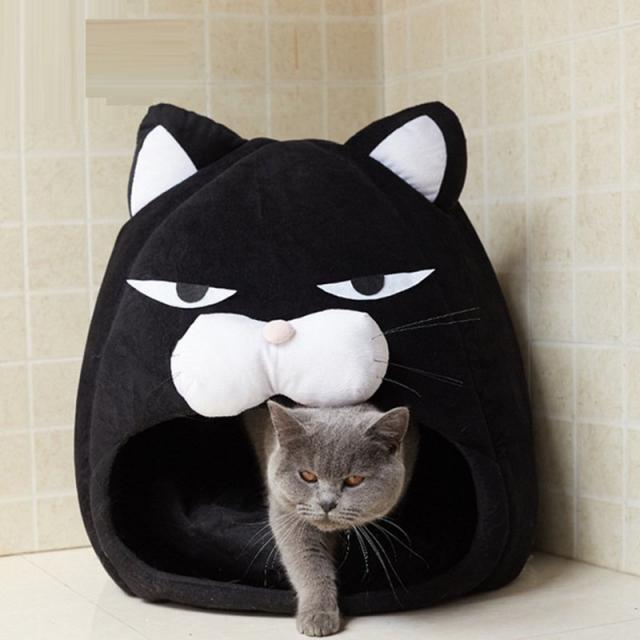 猫ベッド ドーム型ハウス キャットベッド 寝袋 猫用品 犬用品 ペットベッド 暖かい ふわふわ 猫型ハウス 水洗い