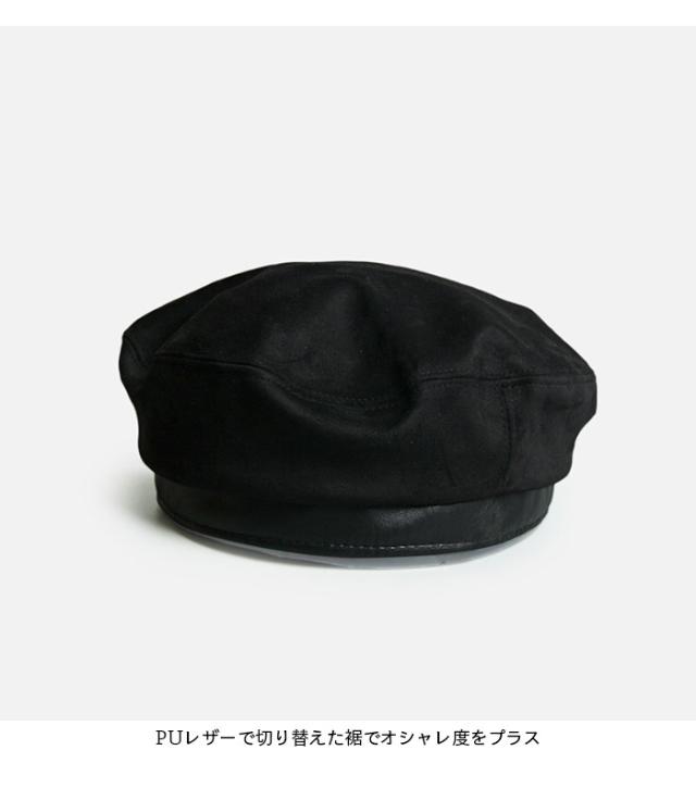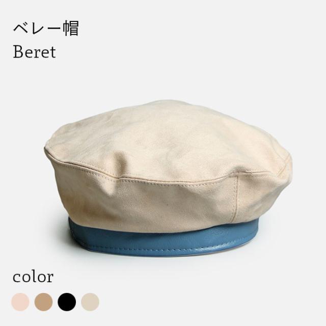 【送料無料】ベレー帽 レディース ベレー 帽子 ハット 裏地付き シンプル スエード調 スエード帽子 切り替え PUレザー フェイクレザー お洒落 カジュアル ふんわり ボリューム ファッション小物 冬新作