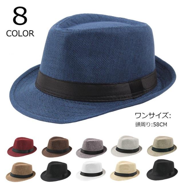紳士用 中折れ帽 メンズ 中折れハット 帽子 おしゃれ 無地 亜麻ハット 紫外線防止 日よけ帽子 新作 春物