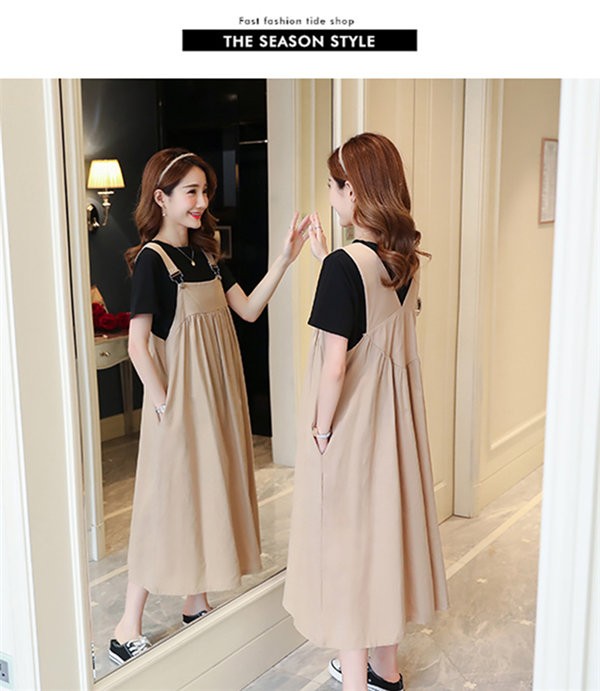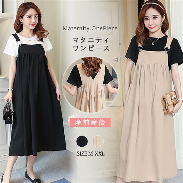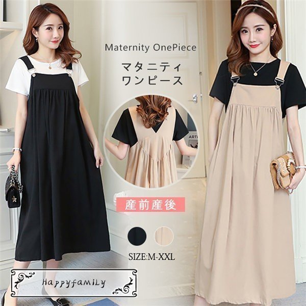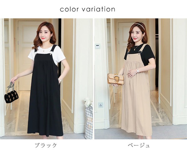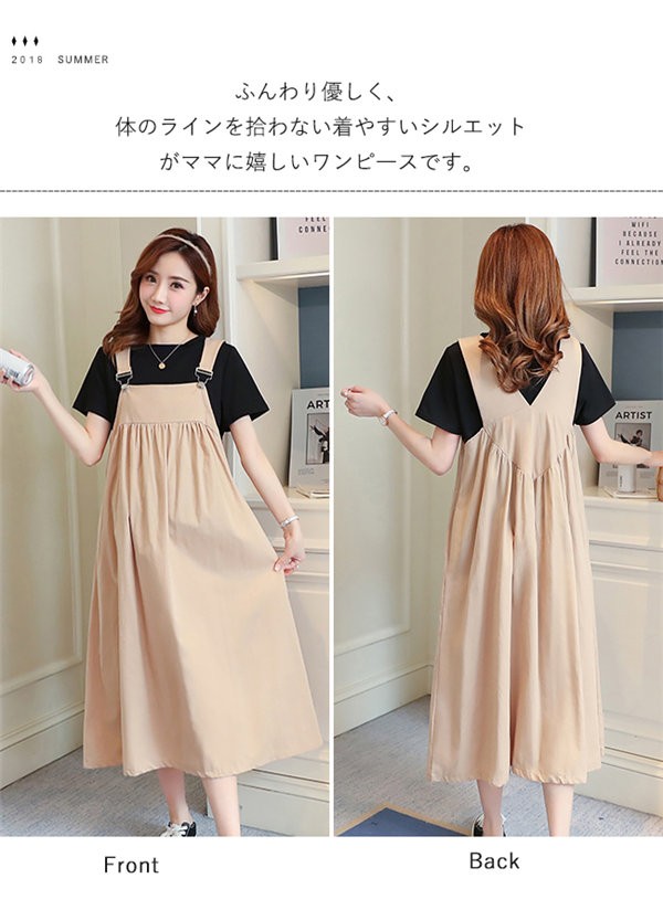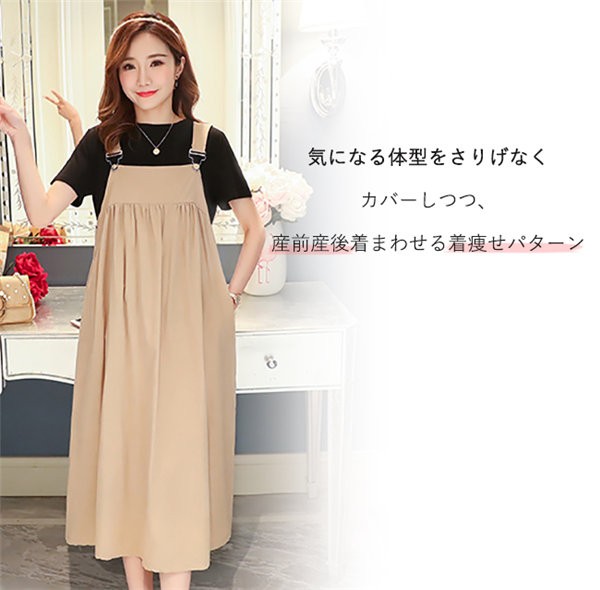 マタニティウエア ワンピース 秋冬 キャミワンピース ミディアム丈 無地 ゆったり レディース