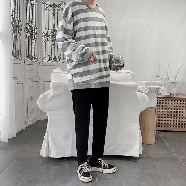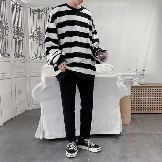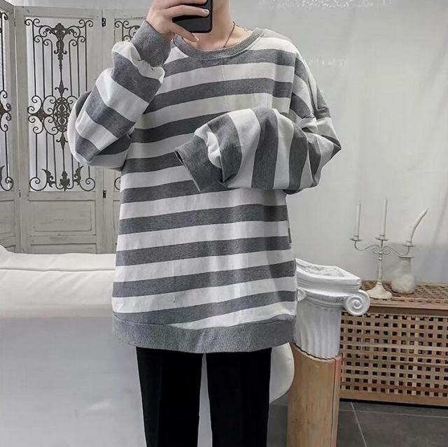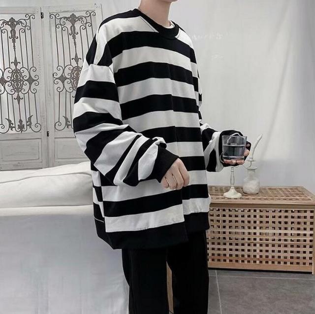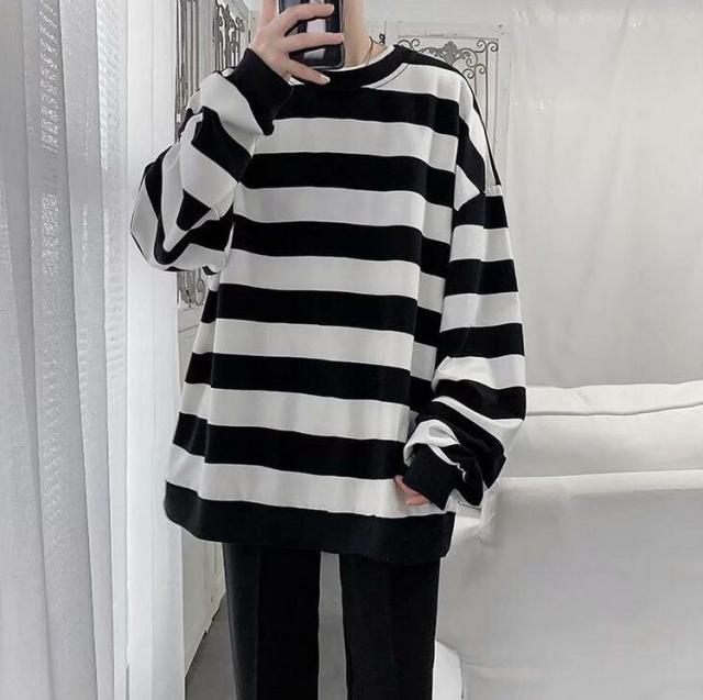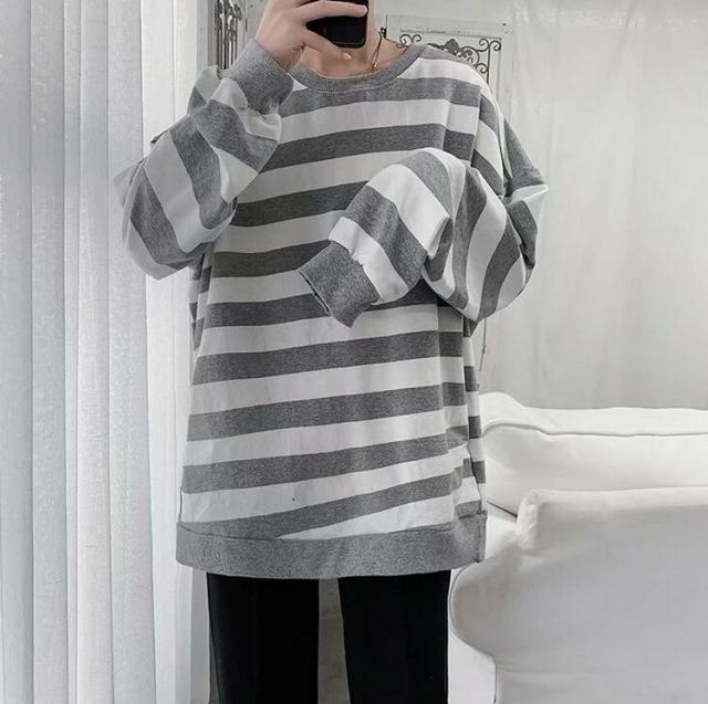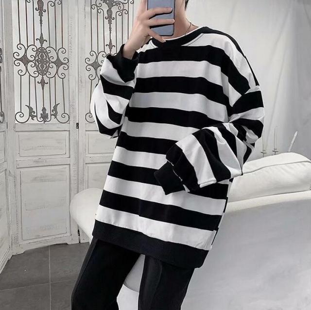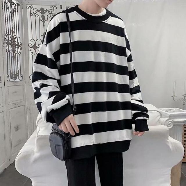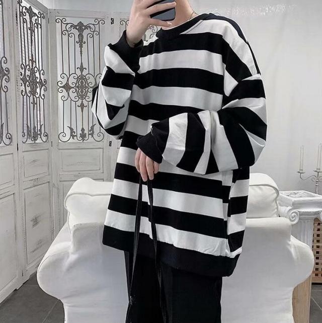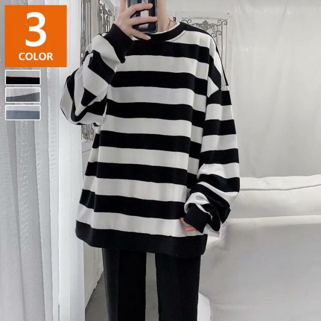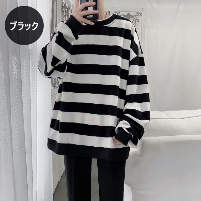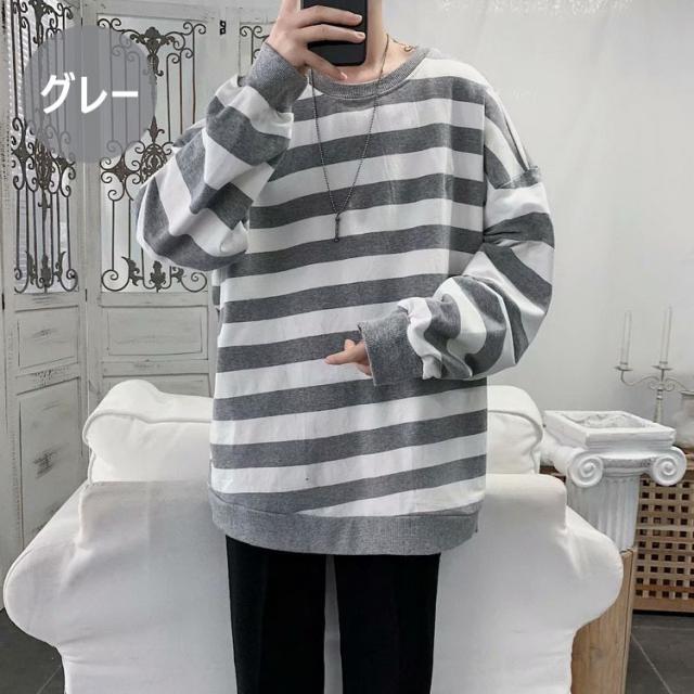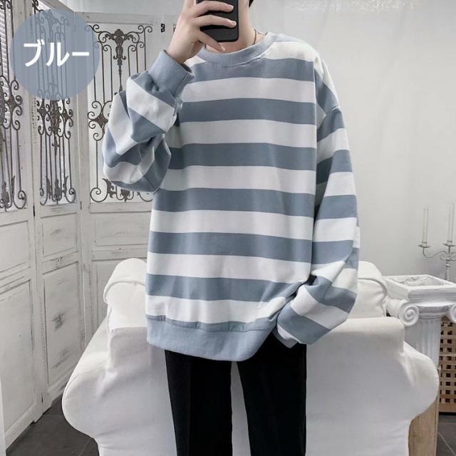 スウェットトレーナー メンズレディース 春秋 ボーダー柄 プルオーバートレーナー カップル 長袖Tシャツ ゆったりトップス 人気 通学通勤 カジュアルトップス