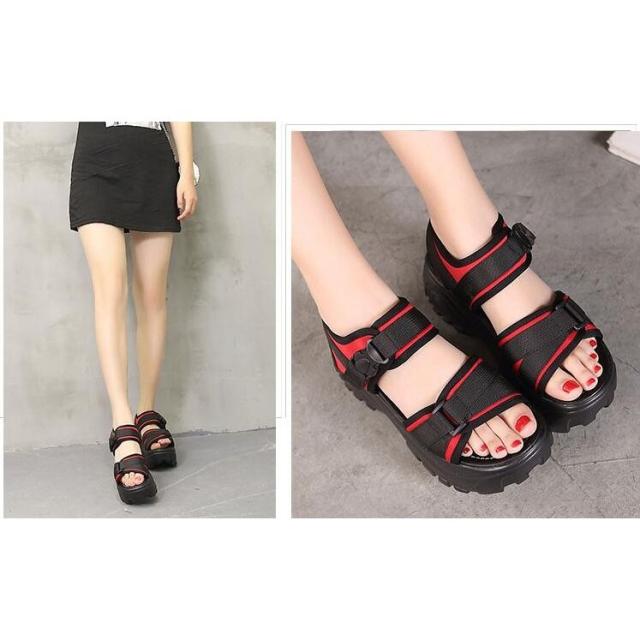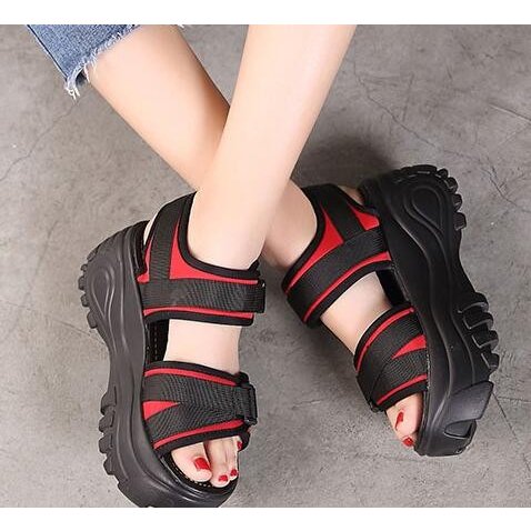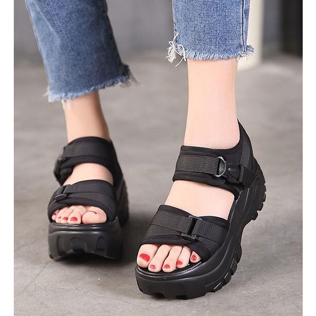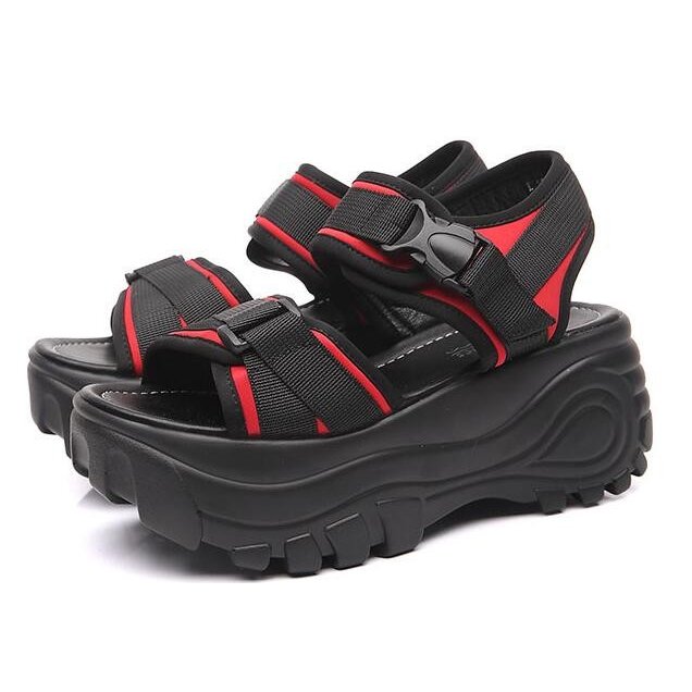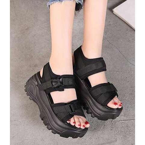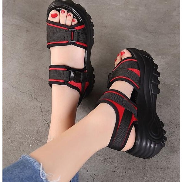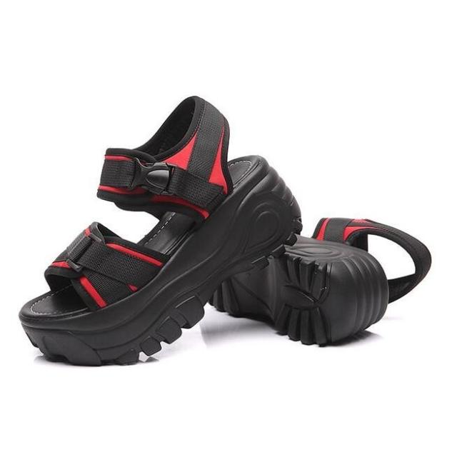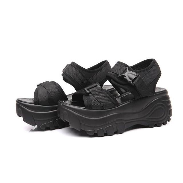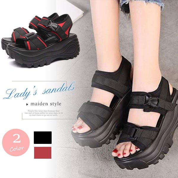 サンダル 厚底 レディース スポーティー ストラップ マジックテープ 差し込みバックル ハイヒール ストーム 大きいサイズ