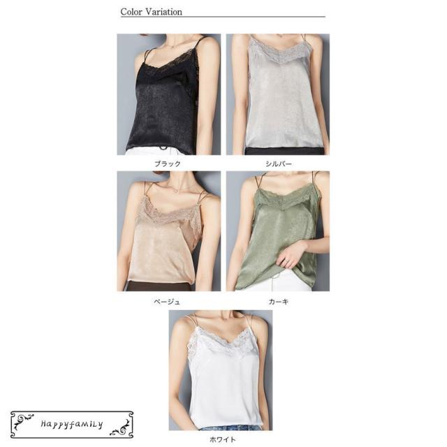 見せるキャミ ラメ キャミソール おしゃれ キラキラ レース インナー トップス ブラック グレー ホワイト ベージュ カーキ レディース