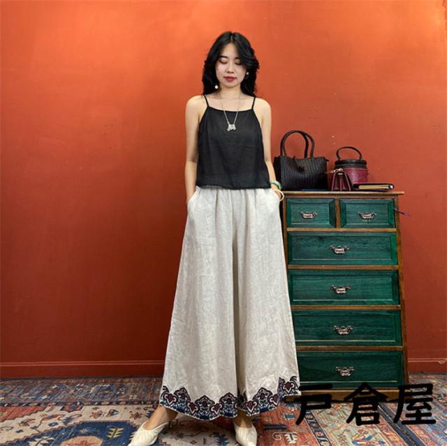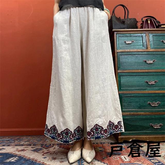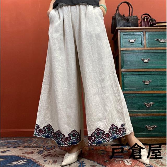 リネンガウチョパンツワイドパンツ レディース ボトムス ロングパンツ 春 夏 パンツワイドパンツ大きいサイズリネンパンツOLオフィスガウチョパンツ