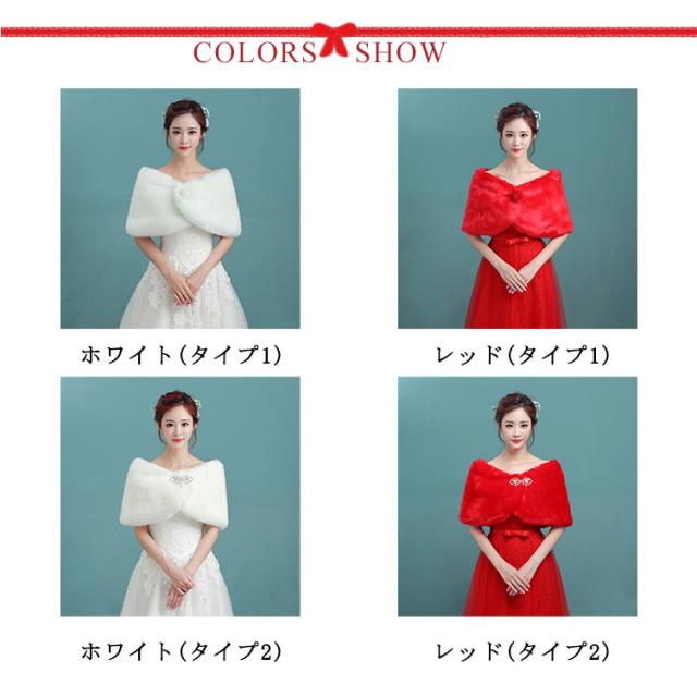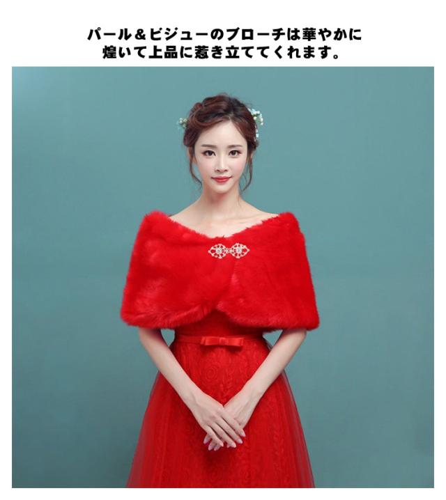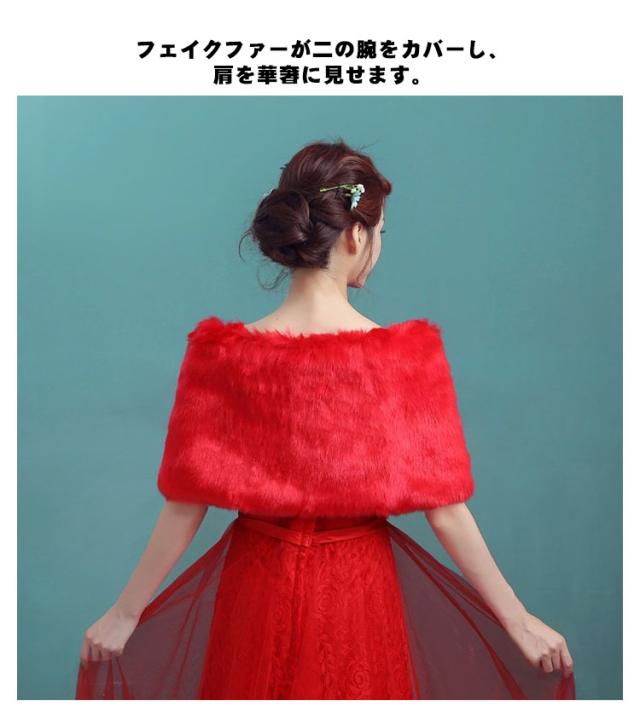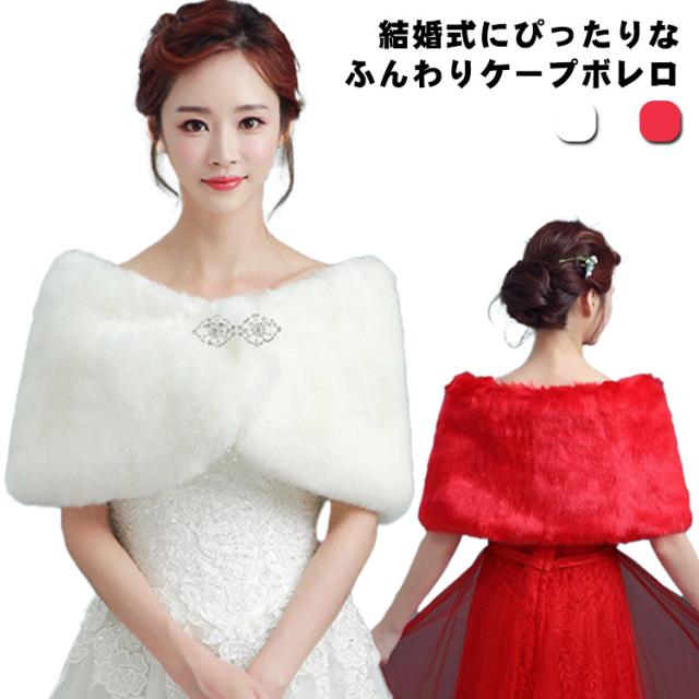 ブライダル用 ボレロ ショール 花嫁 フェイクファー 披露宴 成人式 着物 ケープ 二次会 ストール 秋冬 防寒 羽織り フォーマル お呼ばれ 結婚式 同窓会 エレガント 謝恩会 ホワイト レッド 赤 ショール 演奏会