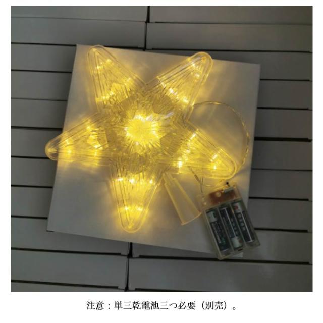 | クリスマス星型イルミネーションライトが登場。 星型イルミネーションライトは取り外し可能なステントを備えたなので、セットアップが簡単。 星ライトは環境にやさしいpvc原料と高輝度省エネLEDを採用し、電池式なのでお好きな場所に飾っていただけてとっても便利! ライトの発光色はウォームホワイトなので、光は柔らかくて美しい、かわいらしく明るくの雰囲気な照明効果を作り出すことができます。 注意:単三乾電池三つ必要(別売)。 | |