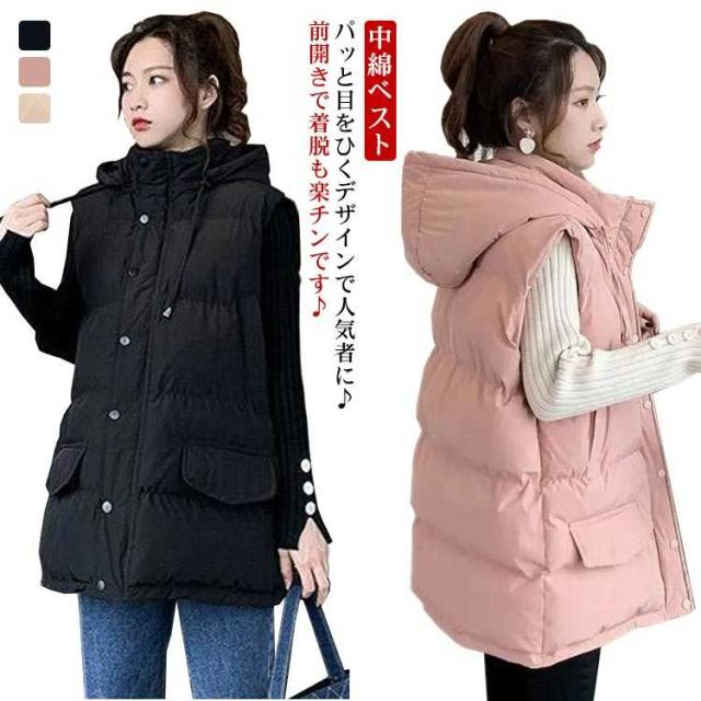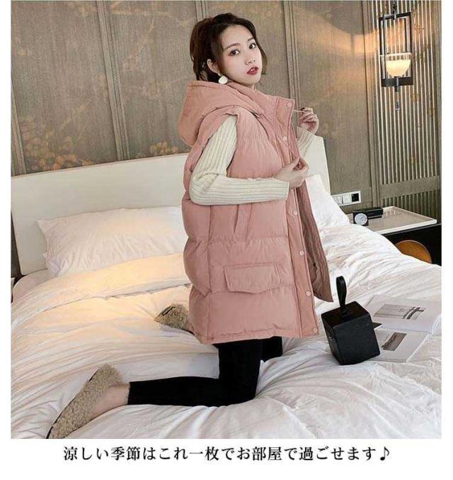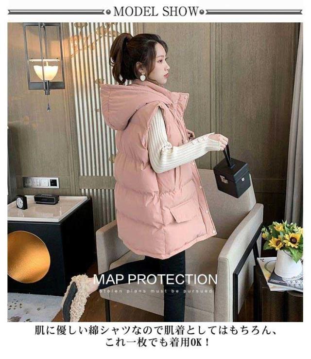 ジャケット 防寒 ロング丈 ロングベスト レディース ジレ 中綿ベスト 秋冬 中綿ベスト 中綿コート 暖かい フード付き 中綿ジャケット アウター 羽織り 中綿 トップス 保温 ベスト 軽量 シンプル カジュアル コート
