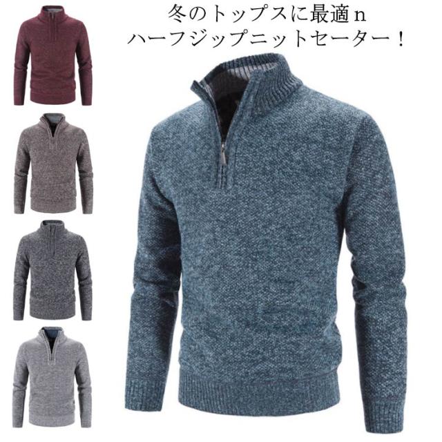セーター メンズニット メンズ ハイネック ニット 長袖 ハーフジップ ハーフジップニットセーター メンズファッション プルオーバー セーター 冬 スタンドカラー M-3XL 男性用 春秋 送料無料 秋冬 ニットトップス 防寒 保暖 大きサイズ 体型カバー ニットソー