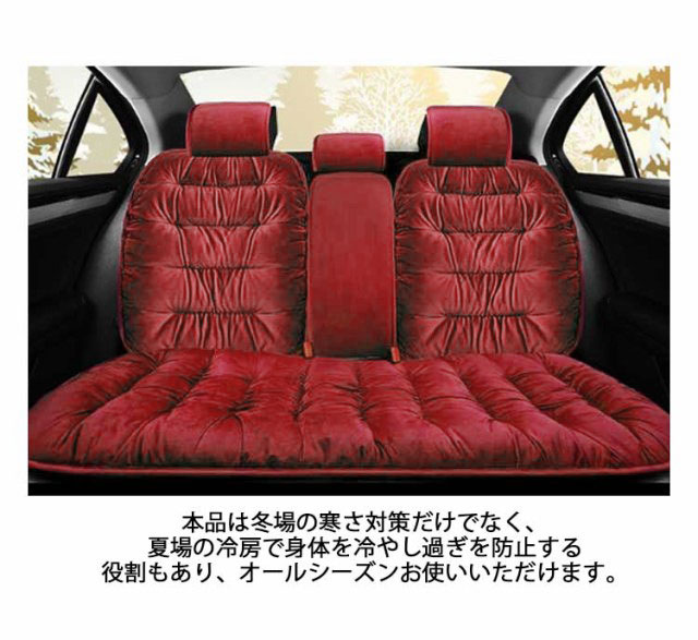 | 表面はあったかいビロード生地を使用したボリューム感のある車用シートカバー5点セット。 高級感のあるビロード生地を採用し、肌触りだけでなく見た目にもこだわりました。 中綿は通気性・クッション性に優れたポリエステルを使用しております。 運転席・助手席・後部座席と5点セットになっているため、車内に統一感が生まれます。 本品は冬場の寒さ対策だけでなく、夏場の冷房で身体を冷やし過ぎを防止する役割もあり、オールシーズンお使いいただけます。 | |