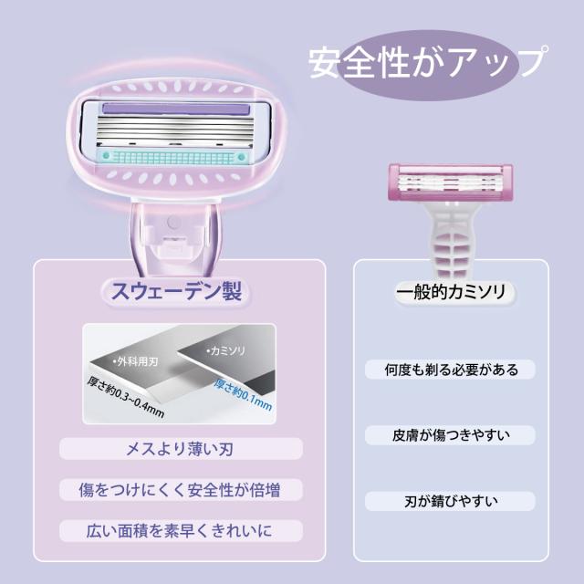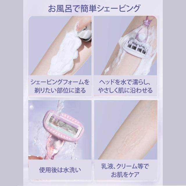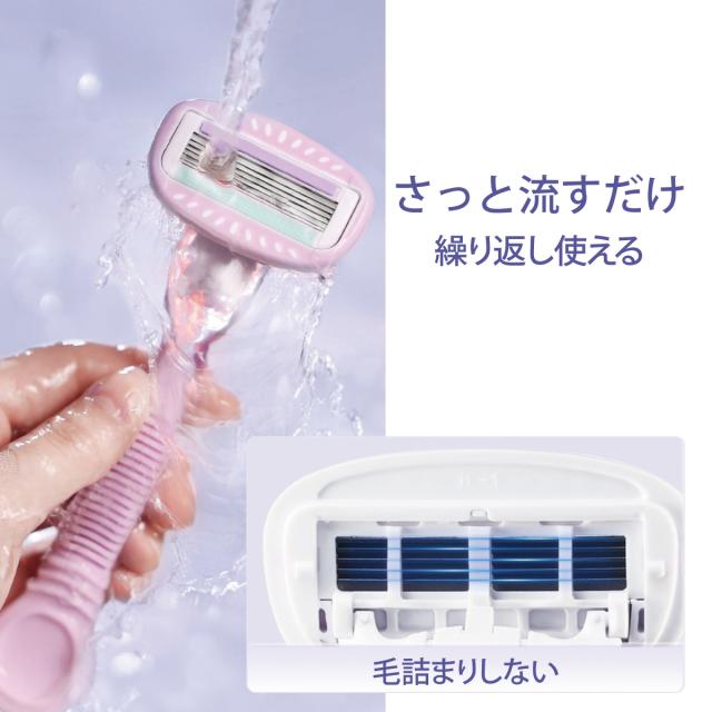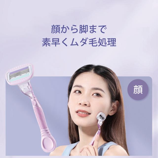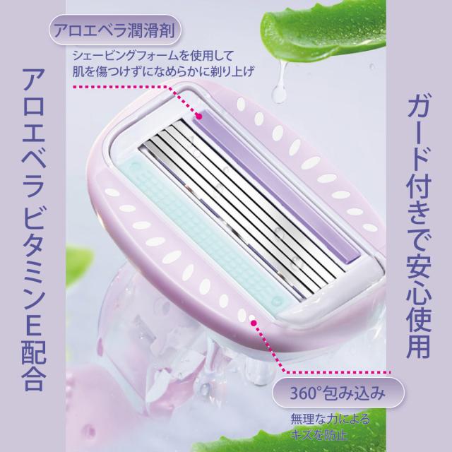 アロエベラ ビタミンE配合のガード付きで、肌を傷つけずに滑らかに剃り上げます。
