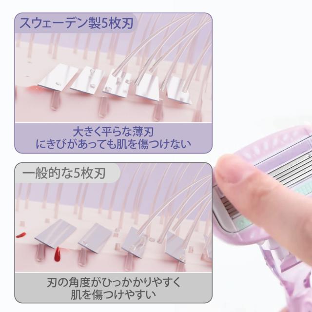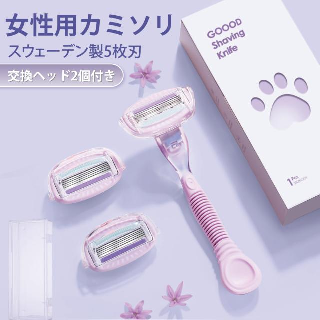 女性用 カミソリ スウェーデン製5枚刃 交換ヘッド2個付き 顔 脇 腕 Vライン 脚 脱毛 コスメ w-shaver