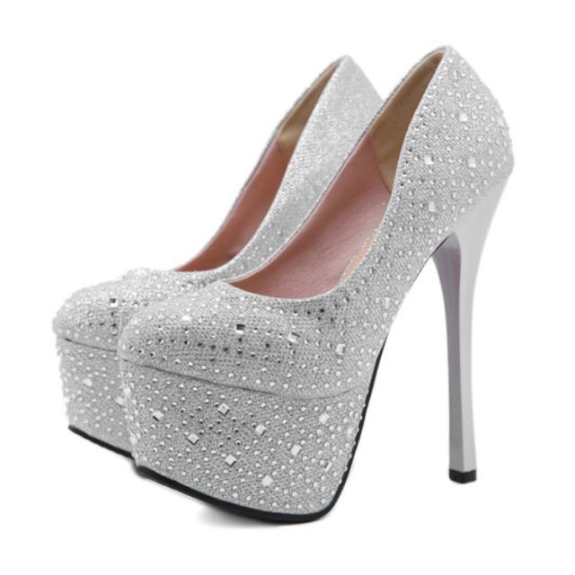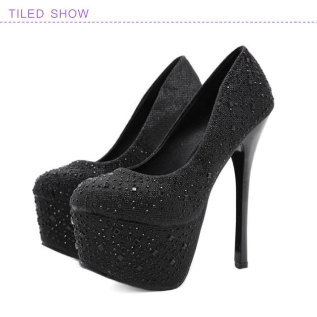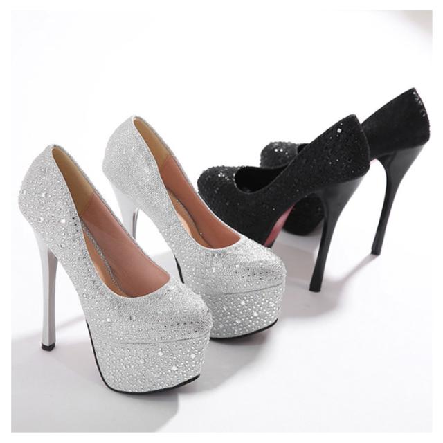 レディース パンプス 厚底 ギッシリきらきらラインストーン前厚ストームラインストーン 美脚 パンプス 靴 シューズ 16cmヒール キャバ ドレス 靴