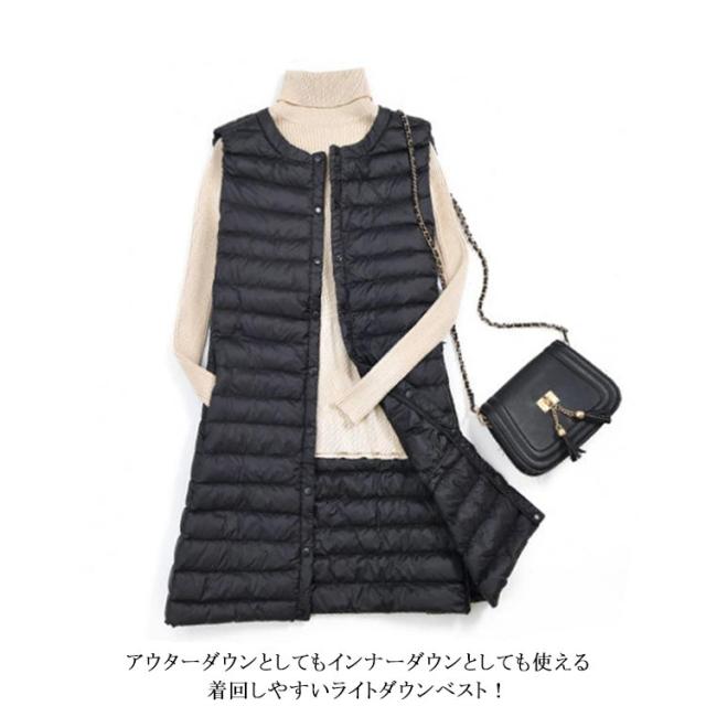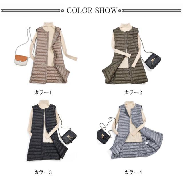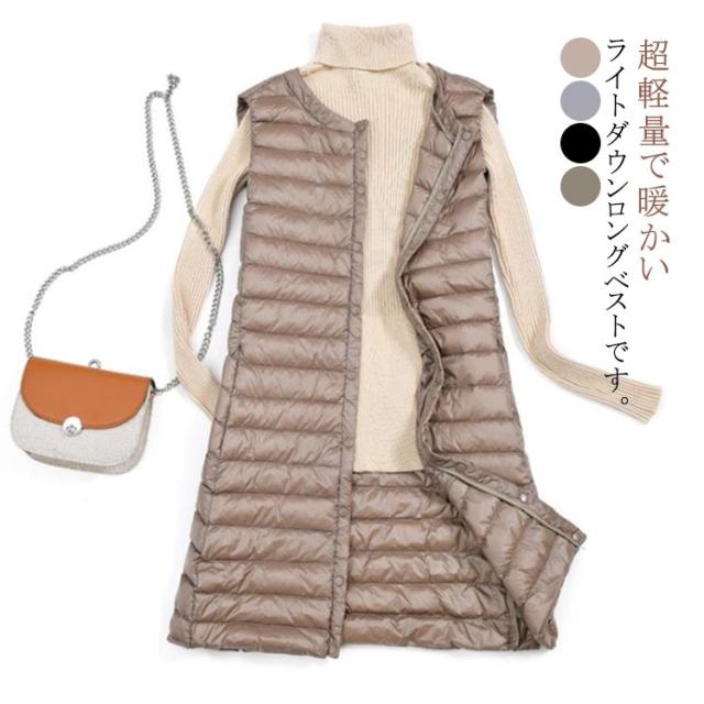 軽量 全4色5サイズ! ダウン ベスト ダウンベスト 春 アウター レディース ジャケット ジレ ロング丈 ロングベスト コンパクト 羽織り 防寒 トップス 保温 ライトダウンベスト インナーダウン 秋 冬 全4色5サイズ! 大きいサイズ 秋冬