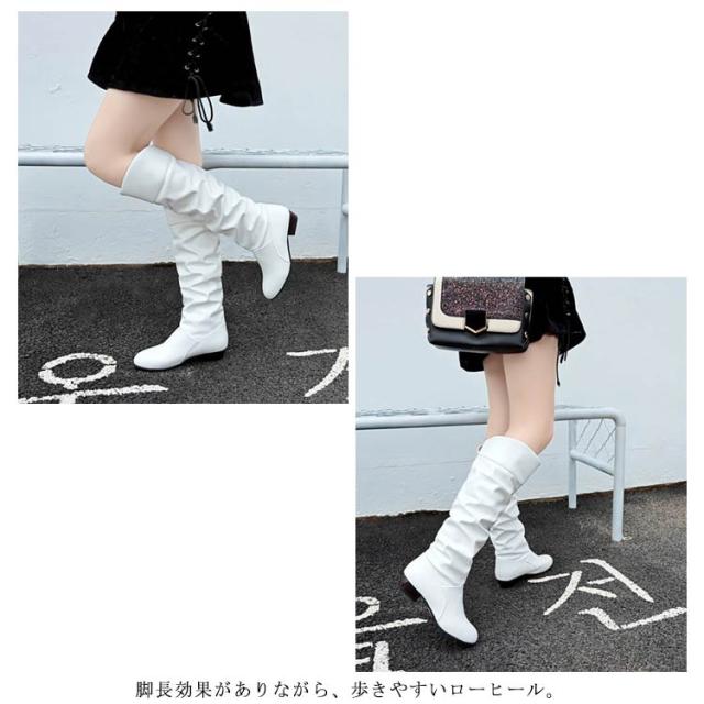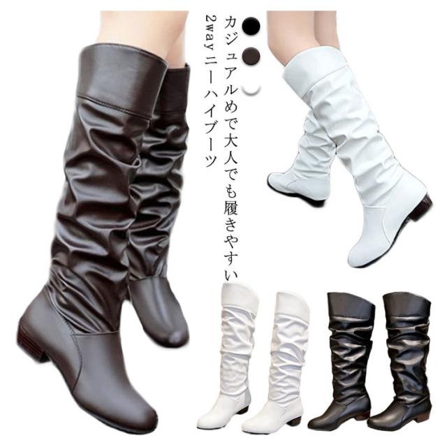 折り返し レディース ニーハイ カジュアル ローヒール ニーハイブーツ 大きいサイズ ルーズブーツ ロングブーツ ブーツ 痛くない 歩きやすい 冬 靴 防寒 2wayブーツ