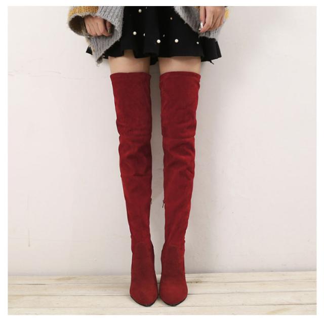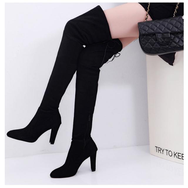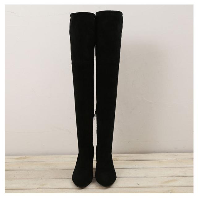 ストレッチブーツ ロングブーツ ロングニーハイブーツ 美脚 ヒール8cm レディース 太ヒール 大きいサイズ ストレッチ ハイヒール 22cm〜26.5cm 上品 痛くない 衣装 シンプル 大人 歩きやすい