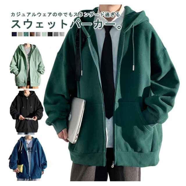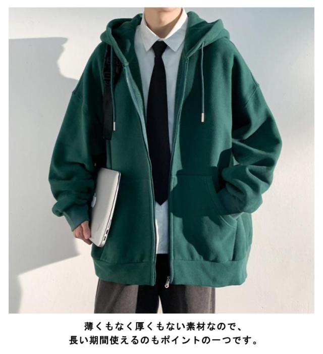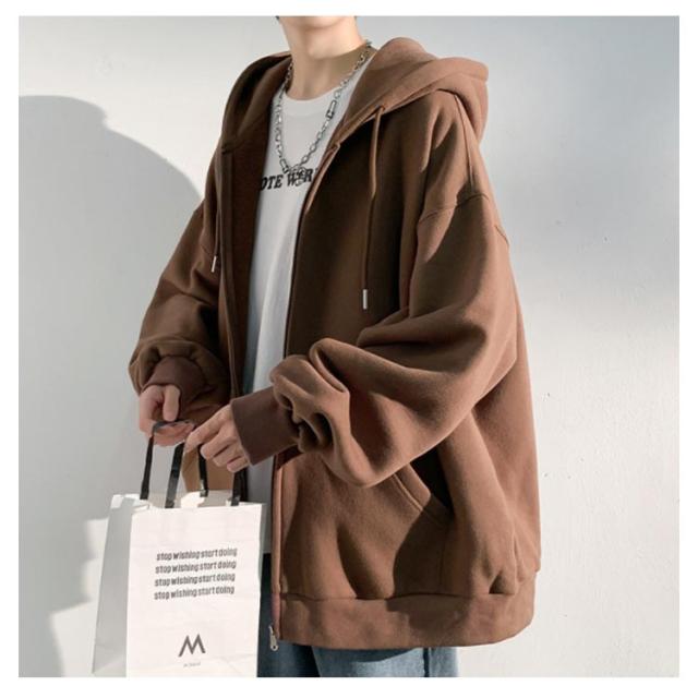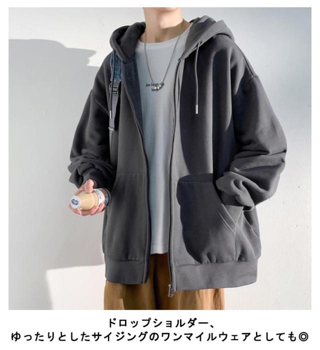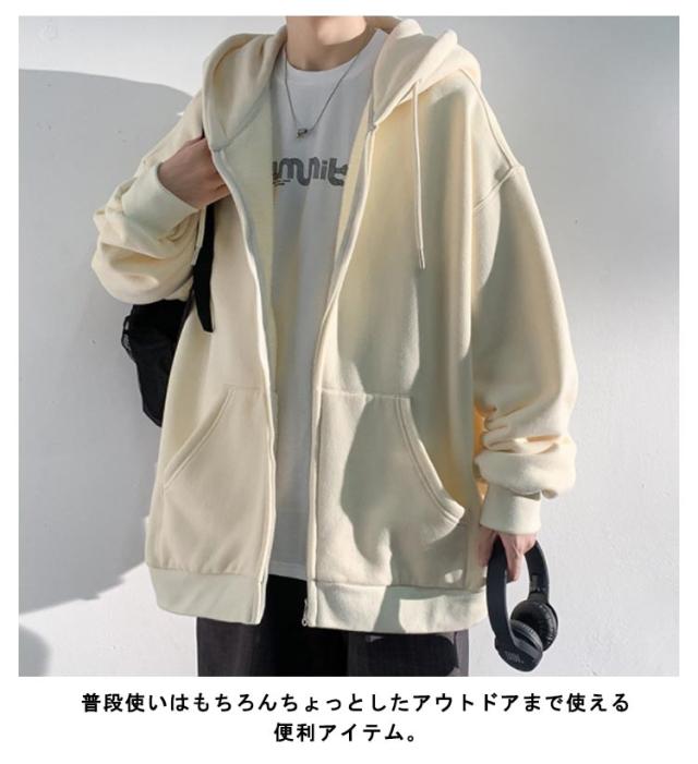 裏パイル メンズ 韓国ファッション ストリート 厚手 レディース スウェットパーカー ジップアップ パーカ ビックシルエット オーバーサイズ パーカー おしゃれ ゆったり アメカジ ライトアウター 秋 春 メンズ 冬 冬服 無地