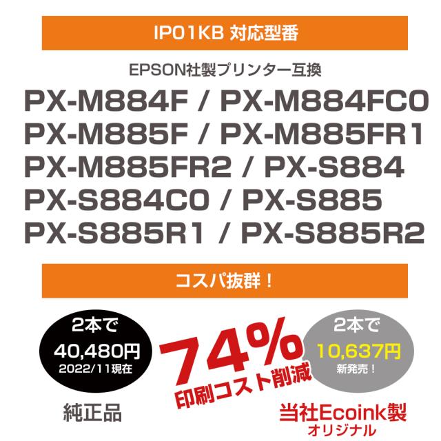 【純正同等品質】IP01KB ブラック 顔料 ×2個 大容量 単品 エプソン 用 互換 インク パック PX-M885FR2 PX-M885FR1 PX-S885R1 など IP01KA ip01