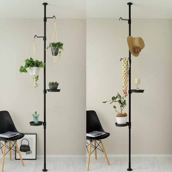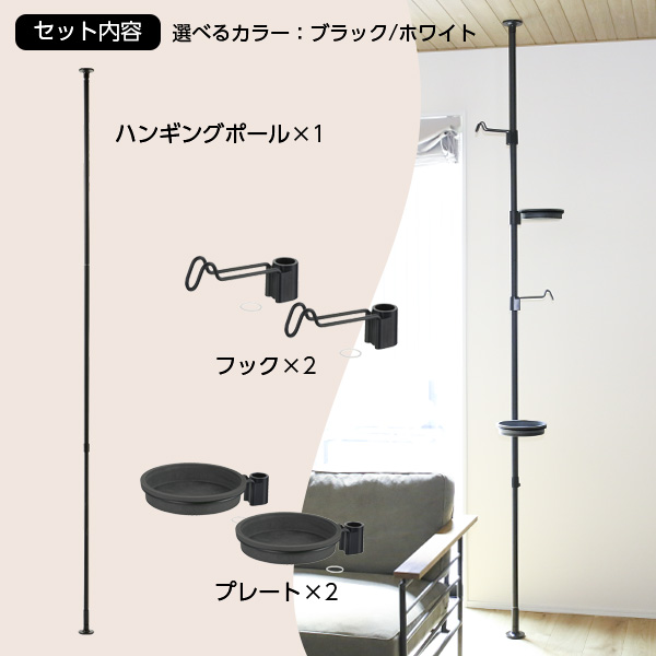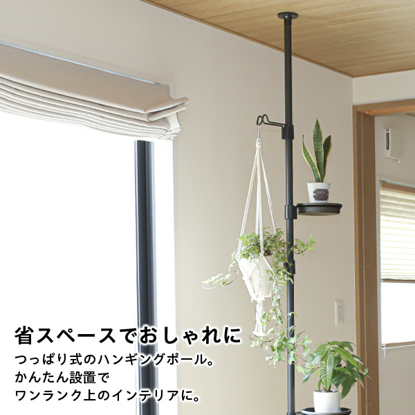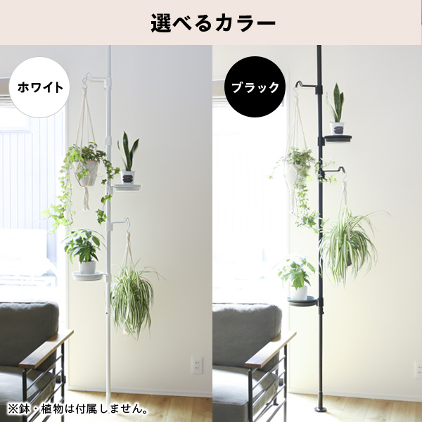 リッチェル ボタニー ハンギングポールセット 選べるカラー:ブラック/ホワイト | 観葉植物 突っ張り 吊り下げ おしゃれ フック・プレートつき インテリア 屋内 室内 吊り鉢 鉢 天井 グリーン 吊るす ポールハンガー 吊鉢
