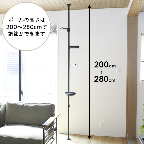 200〜280cmの間で高さ調節ができるので、室内のさまざまなところに設置ができます。