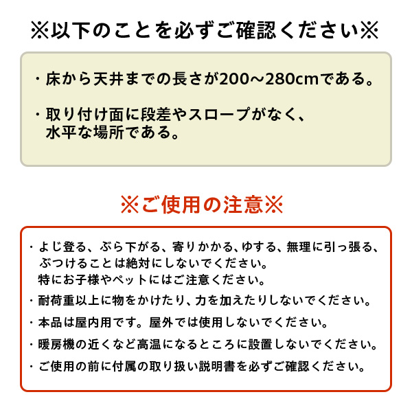 ※突っ張り力で固定するタイプなので、取り付ける面がしっかりしていることを確認してください。