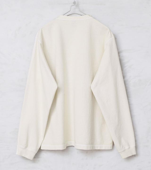 生地には薄手のスウェットのように存在感のある9オンスのジャージー素材を使用。肌に触れる柔らかなUSAコットンが気持ち良い一着です。その厚みを支える丈夫な縫製なので、安心して洗濯を繰り返すことができます。