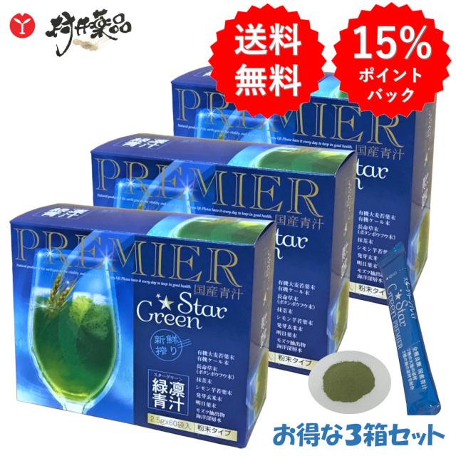 スターグリーン 60袋 60日分 (1袋/日) ×3個 粉末 国産 緑凛 青汁 野菜不足 大麦若葉 国産 ケール 食物繊維 サプリメント サプリ