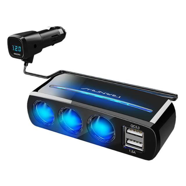 車載 増設 3口 シガーソケット USB 2口 デュアル 充電 QC3.0 スマホ 電圧チェッカー 電源 車中泊 車内 ドレスアップ 3GUTISISI