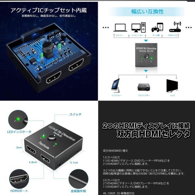 HDMI 切替器 分配器 双方向 hdmiセレクター 4K 3D 1080P対応 2入力1出力 手動切替 PS4 Nintendo Switch SWITC041
