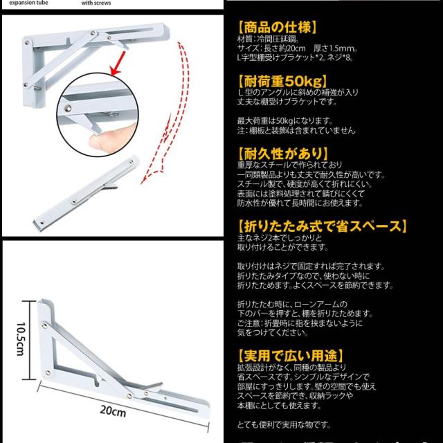 棚受け金具 L字型 2本セット 30cmタイプ ブラック 棚支え ブラケット 折りたたみ アイアン 金具 耐荷重50kg 男前 ブルックリン風 カフェ風 2-ORIKATA-30-BK