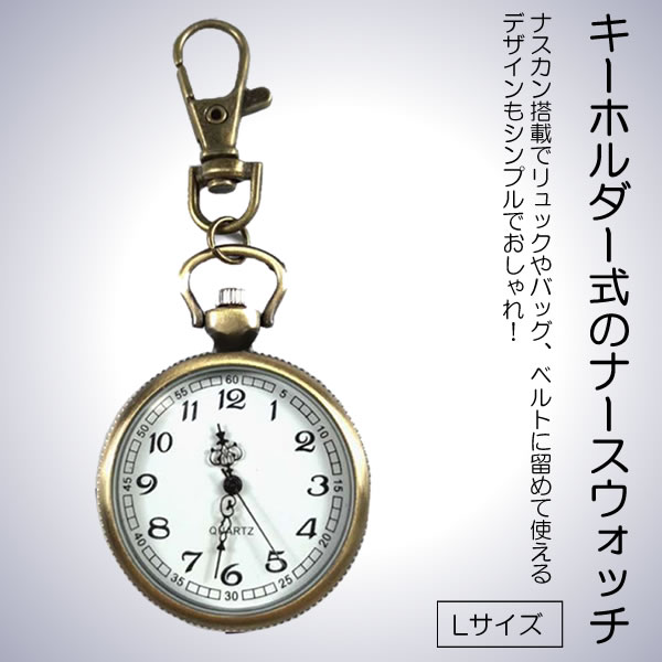ナースウォッチ 時計 Lサイズ 懐中時計 キーホルダー ナスカン シンプル リュック バッグ ポケット ランドセル SINNASU-L
