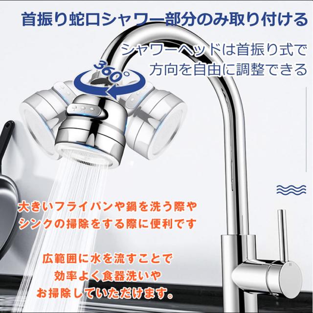 蛇口シャワー キッチンシャワーヘッド 蛇口 シャワーヘッド キッチン 節水 首ふり式 流し切替 水圧調整 水ハネ防ぐ 泡沫器 取付簡単 幅広い用途 首ふり バスルーム パッキン付き