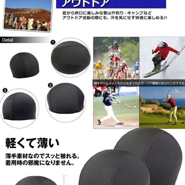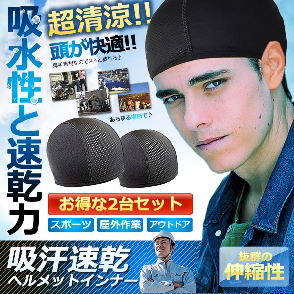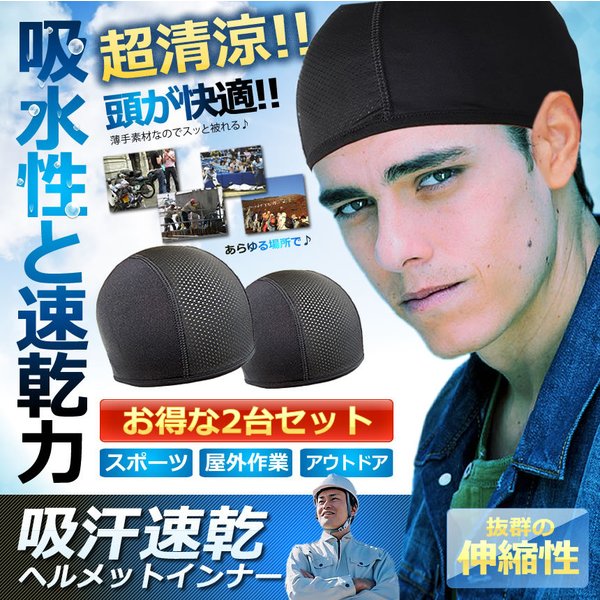 清涼ヘッド 2枚セット ヘルメット インナー キャップ 無地 吸汗 速乾 綿 スキー バンダナ 作業 バイク 作業用 2-SEIHEAD