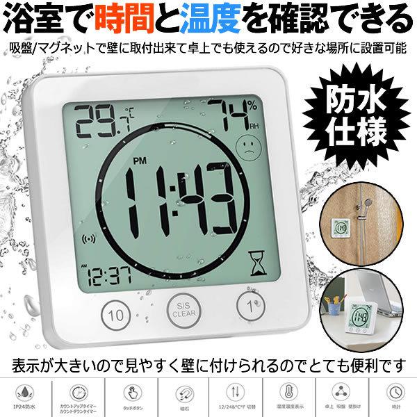 デジタル温湿度計 防水 時計 タイマー 温度計 湿度計 温湿度計 湿温度計 温度湿度計 湿度温度計 デジタル時計 防水置時計 置き時計 浴室 BOTOKS