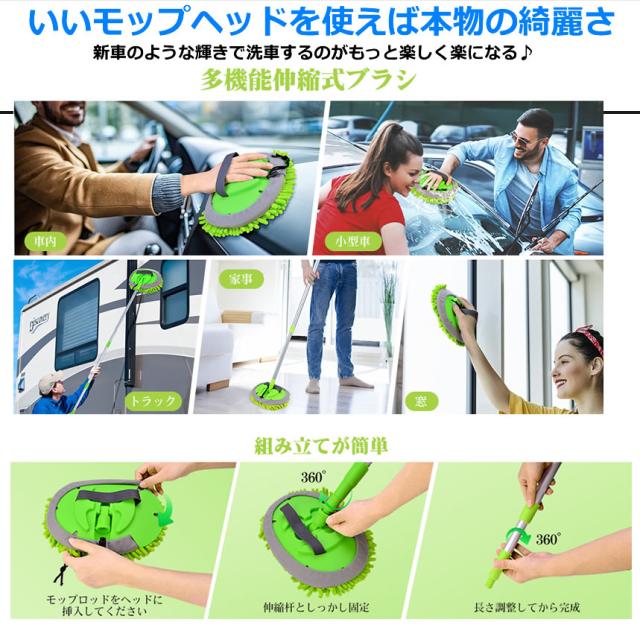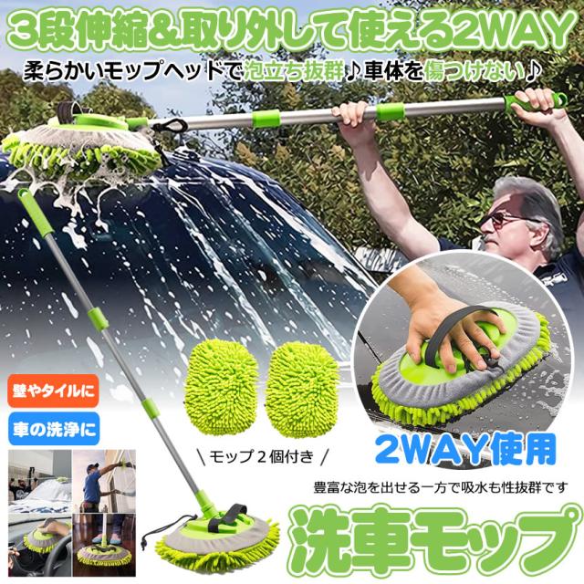 洗車モップ 伸縮タイプ 洗車ブラシ 洗車手袋 大型車 車 伸縮 洗車 モップ マイクロ タイヤホイール 傷つかない トラック ロング ブラシ 洗車用品 掃除 家 SEN2
