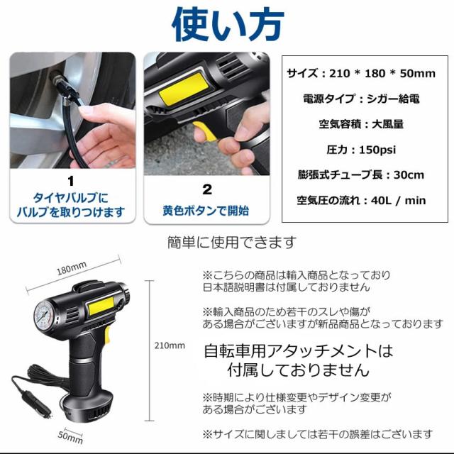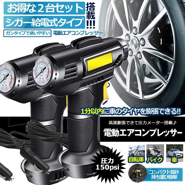 電動 エアコンプレッサー 2個セット エアーコンプレッサー シガー給電 自転車 空気入れ 自動車 バイク ボール 電動空気入れ コンプレッサー ライト SIGAPRE