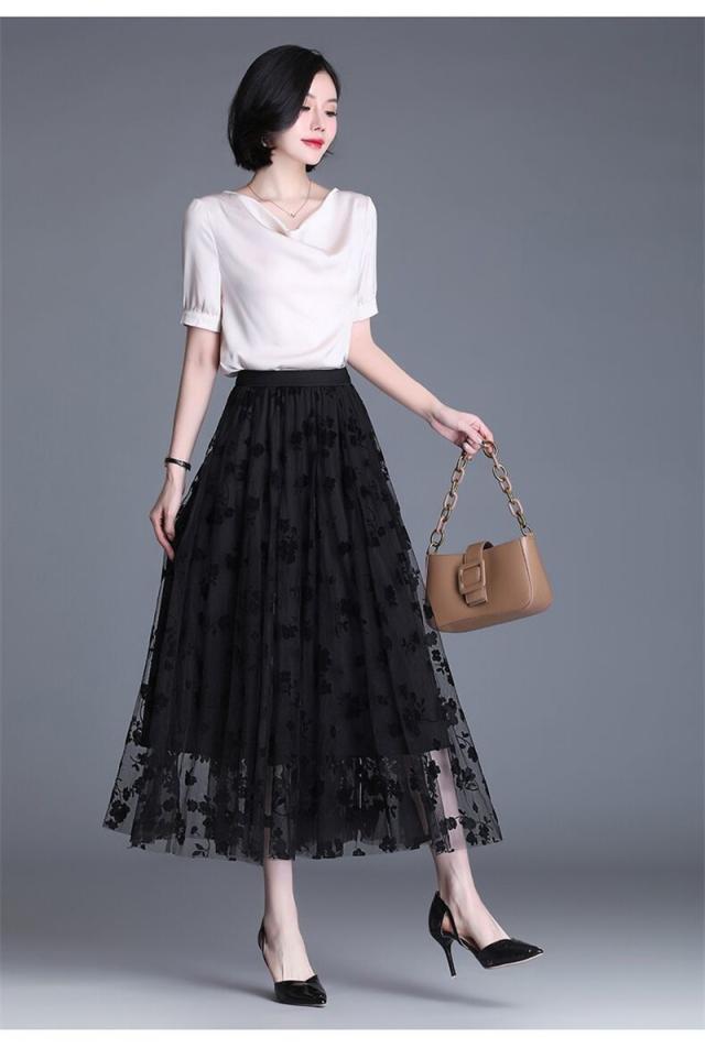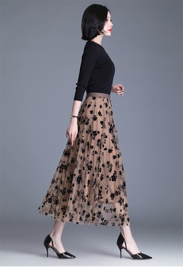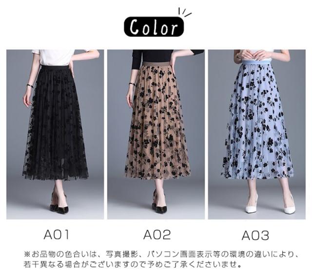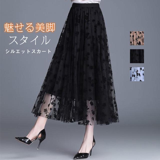 フレアスカート レディース レーススカート プリーツスカート 春夏秋冬 総花柄 ボトムス あたたかい ミモレ丈 ロング ストレート