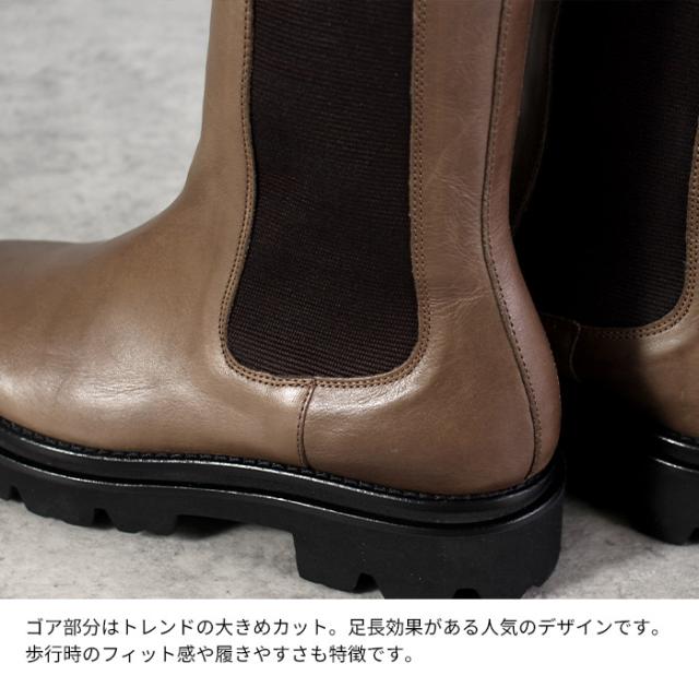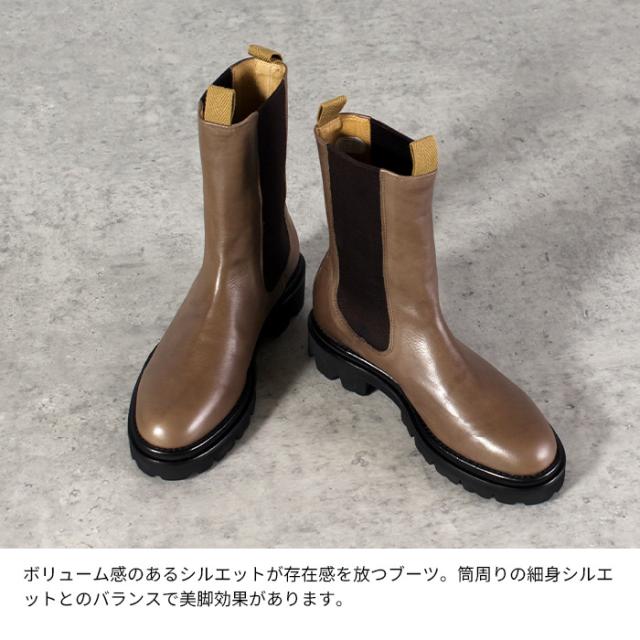 | 人気のチェルシーブーツにボリューム感のあるシルエットが存在感を放つブーツ。脚のラインをキレイに見せてくれる、やや細身の筒周りのシルエットと程よいボリュームソールの好バランス感。カジュアルなデイリーコーデにはもちろん、フェミニンなスタイリングの外しとしてもおすすめ。 ※天然素材の特性上、多少のキズやシワ、または色ムラがある場合がございます。汗や雨などで濡れた場合、色移りする場合がございます。また革の品質保持のため、なるべく濡らさないようご注意下さい。 |