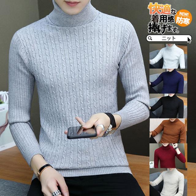 【水曜日まで!10%クーポン配布中】 セーター メンズ 冬 ニット 長袖 ニットセーター ハイネック タートルネック ケーブル リブ プルオーバーニット 秋服 カーディガン 暖かい ニットソー 防寒
