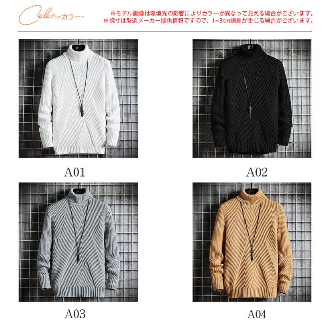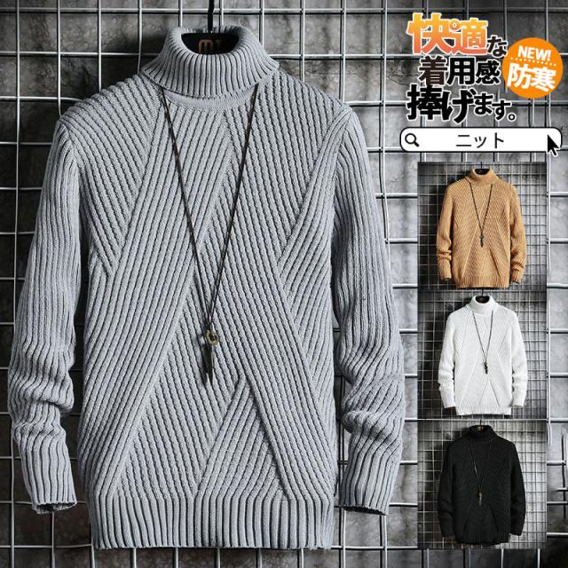 【水曜日まで!10%クーポン配布中】 セーター メンズ 冬 ニット 長袖 ニットセーター ハイネック タートルネック ケーブル リブ プルオーバーニット 秋服 カーディガン 暖かい ニットソー 防寒